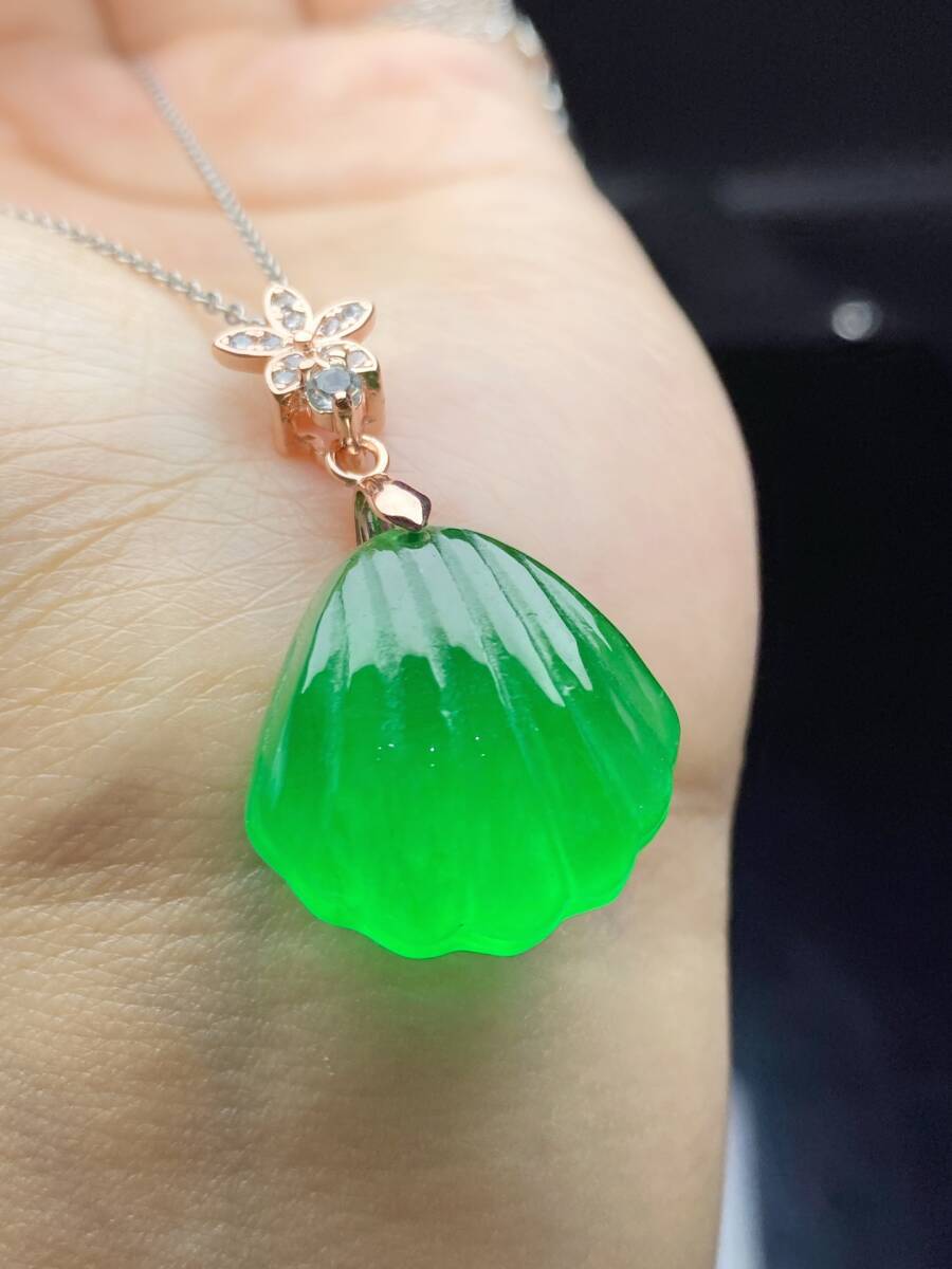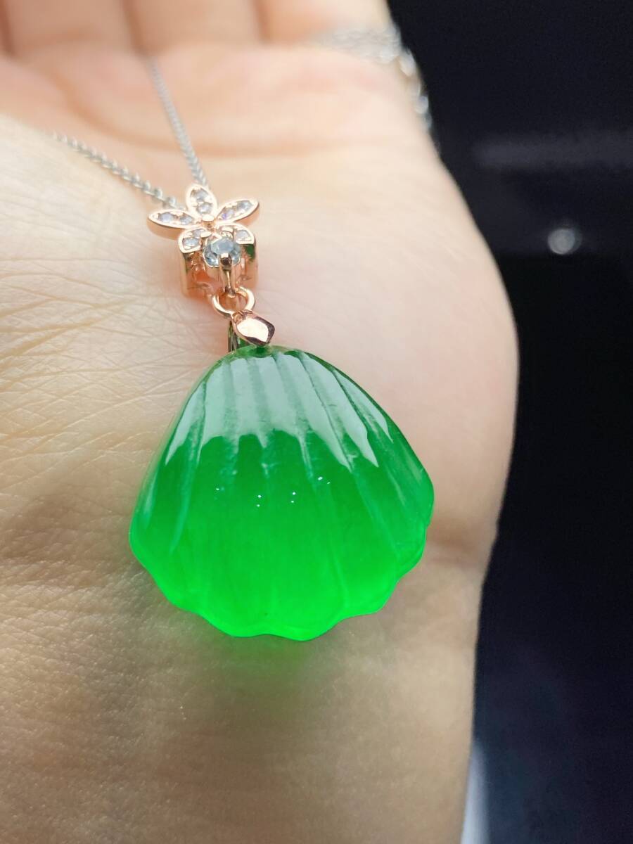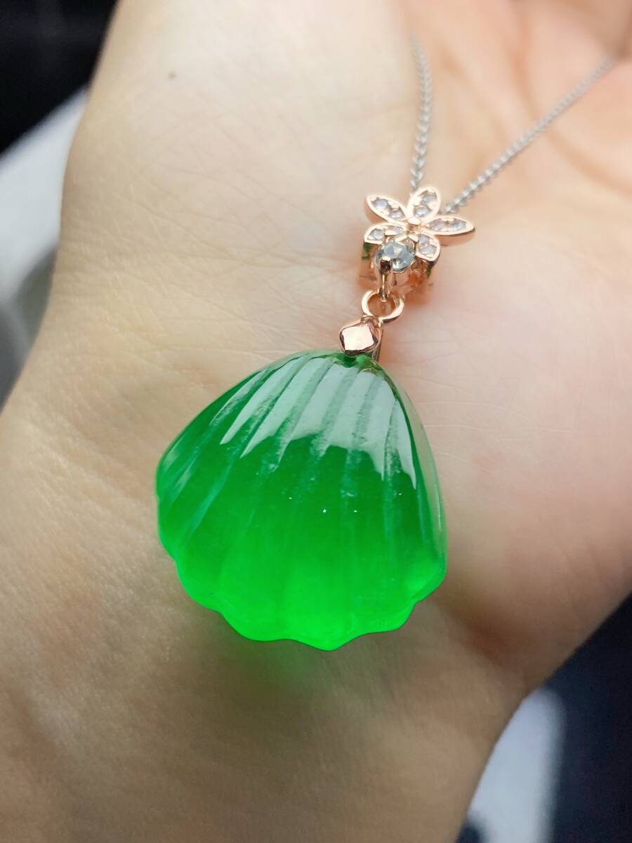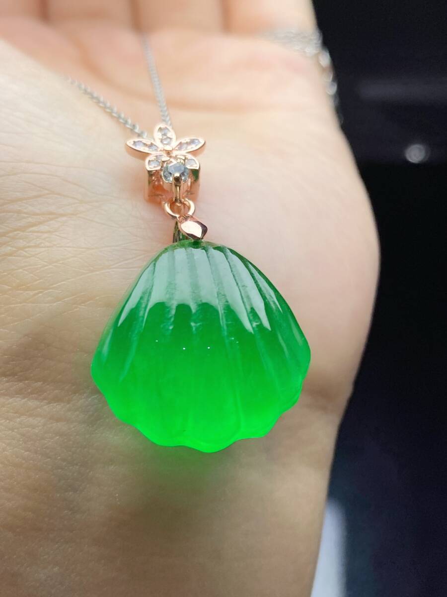 Aグレード翡翠 冰種翡翠 満緑 帝王綠 貝殼 高氷 首飾 自戴 贈り物 箱付き時代物 骨董品 旧家蔵出し 唐物 中国古玩 古美術品