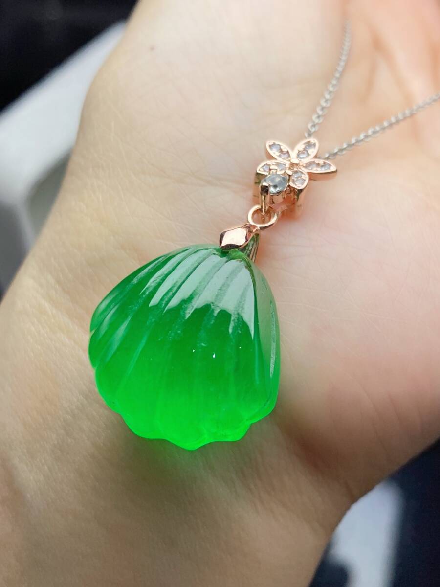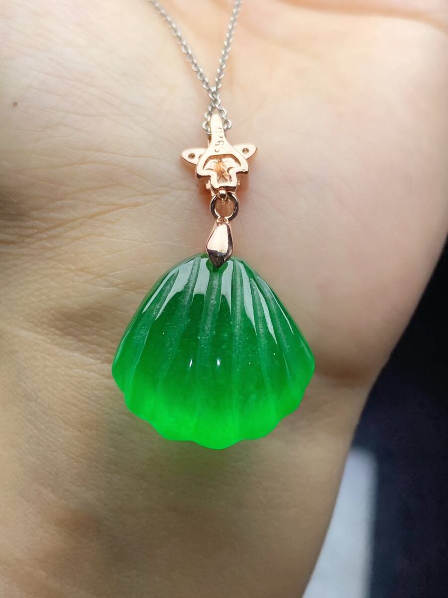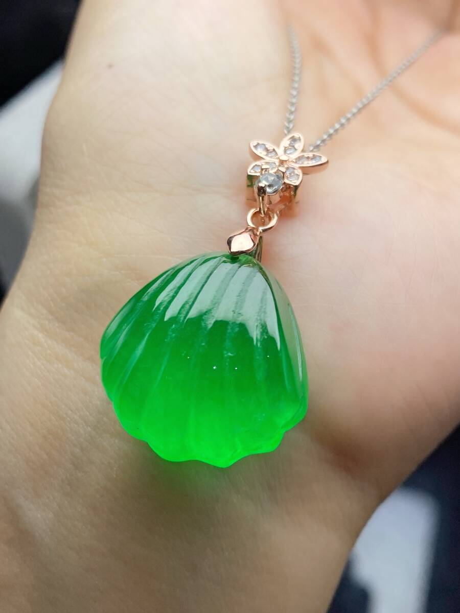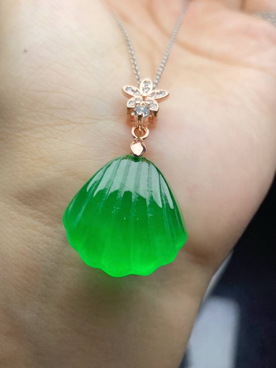 Aグレード翡翠 冰種翡翠 満緑 帝王綠 貝殼 高氷 首飾 自戴 贈り物 箱付き時代物 骨董品 旧家蔵出し 唐物 中国古玩 古美術品