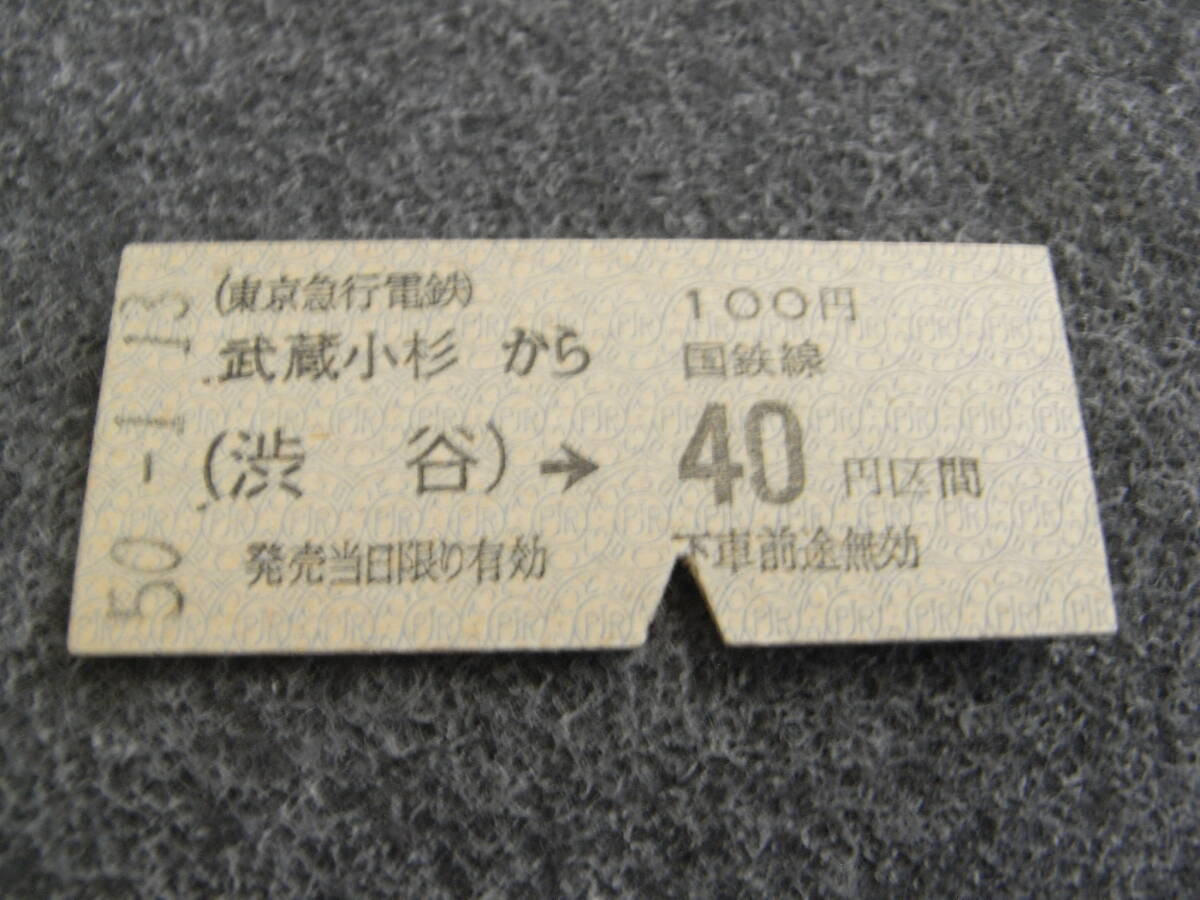 東京急行電鉄国鉄連絡乗車券 武蔵小杉から(渋谷)→国鉄線40円区間 昭和50年1月13日 東急