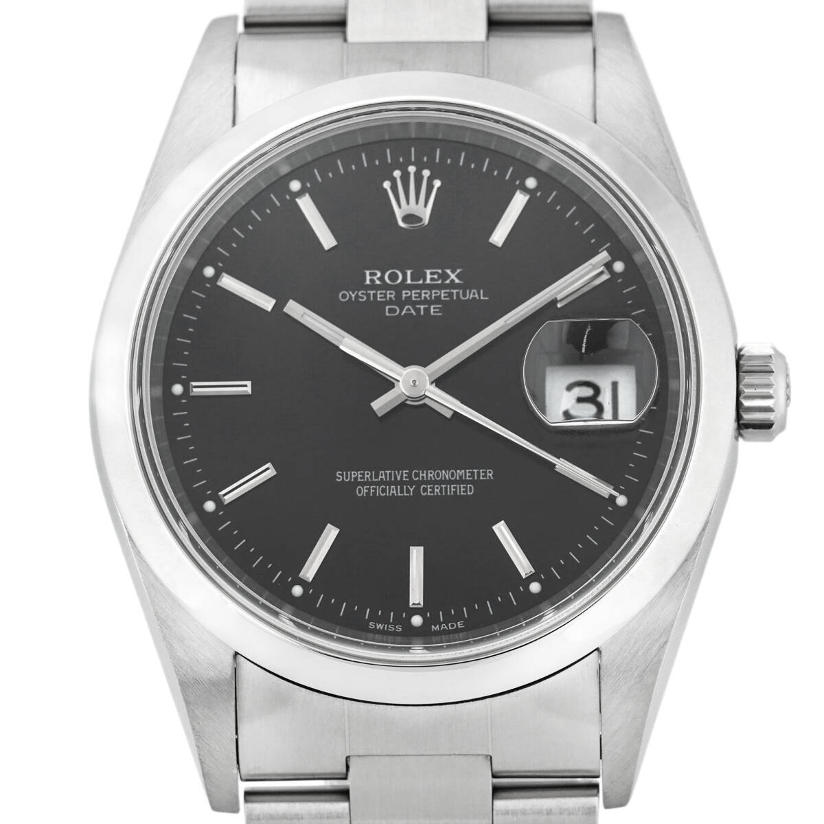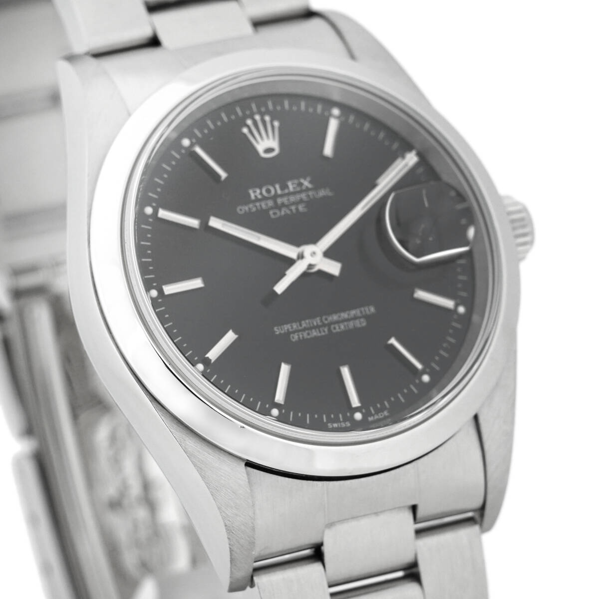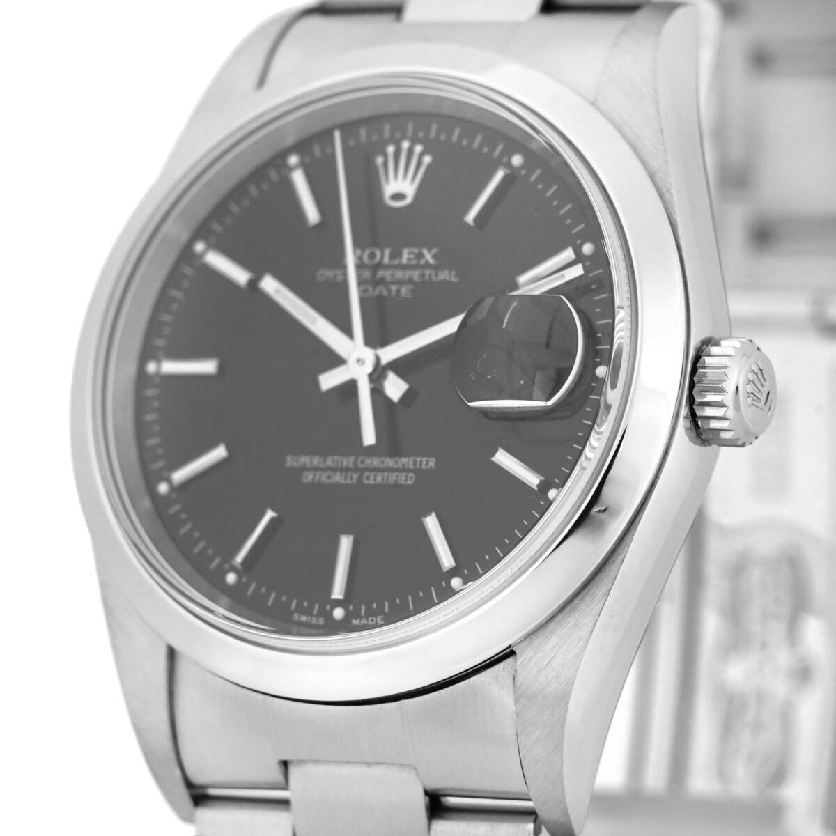 ROLEX ロレックス オイスターパーペチュアル デイト 15200 自動巻き ブラック文字盤 ユニセックス 保証書 (K-SH4626)