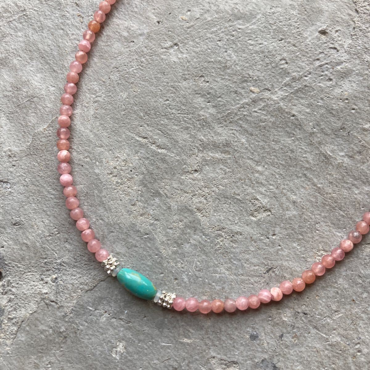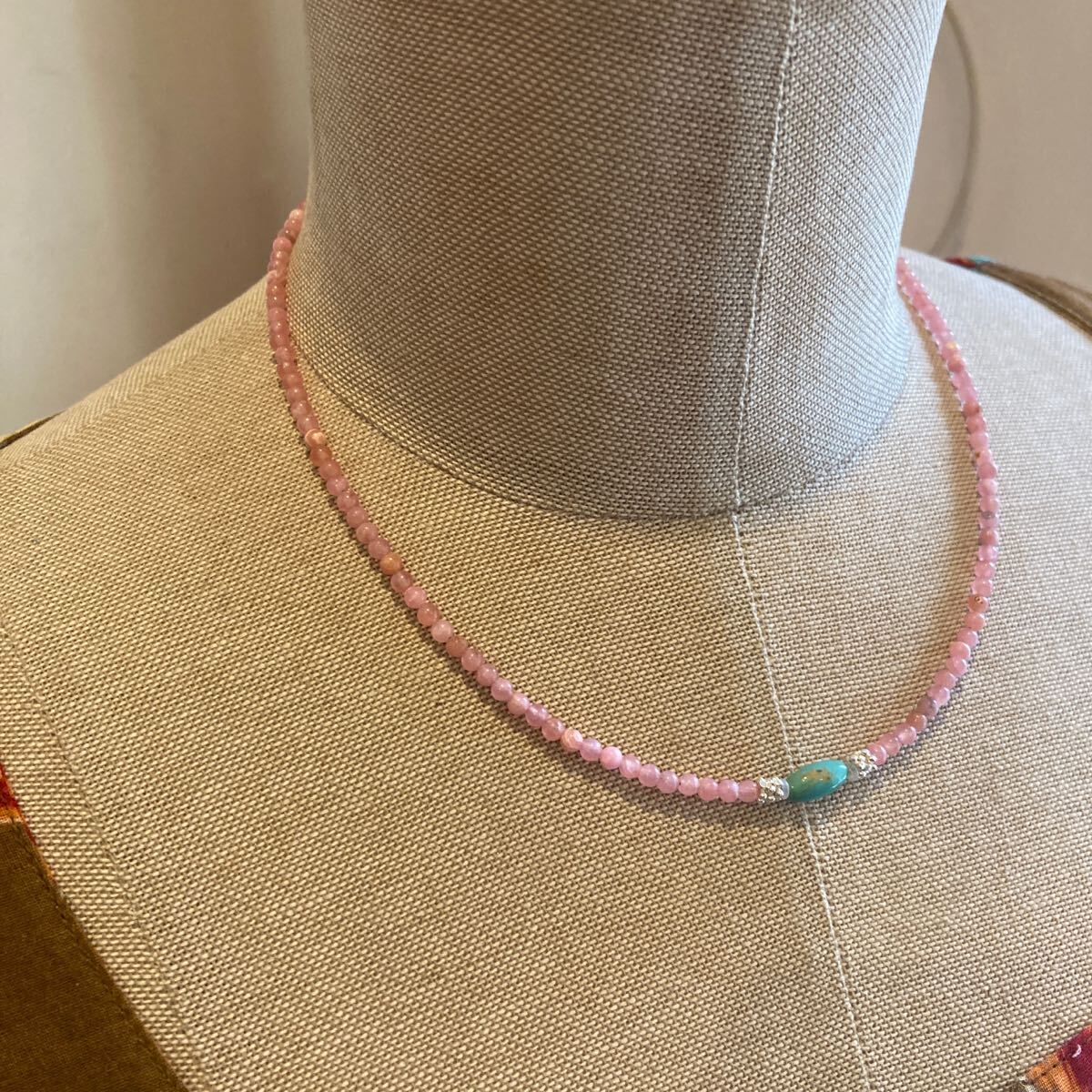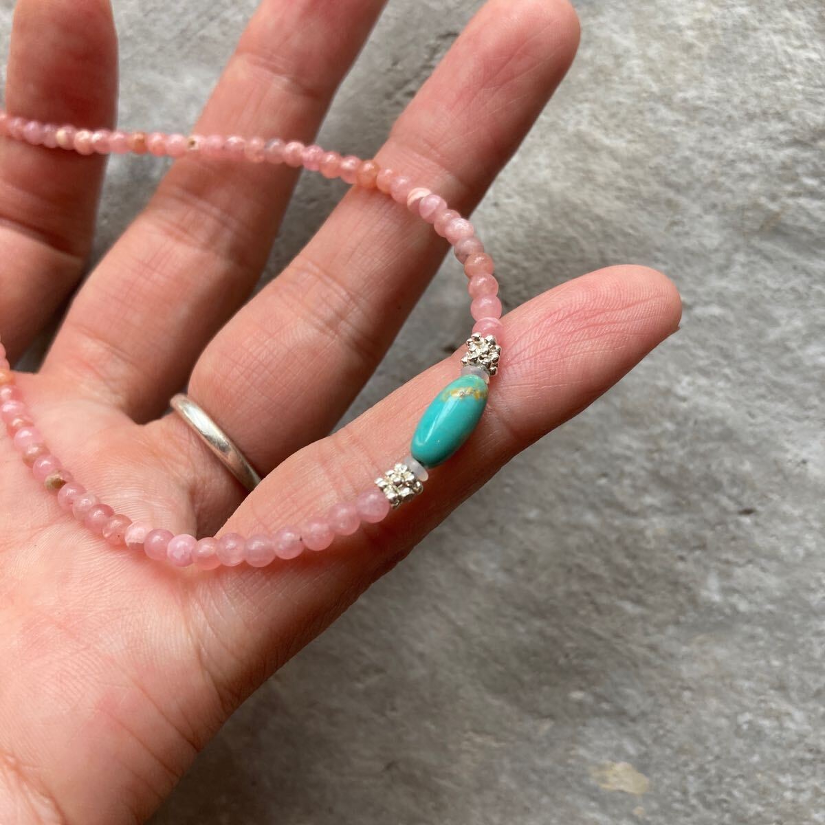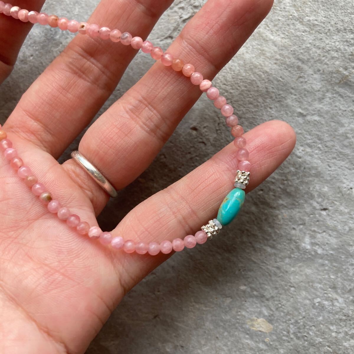 上質なインカローズと天然ターコイズを合わせたネックレスです。