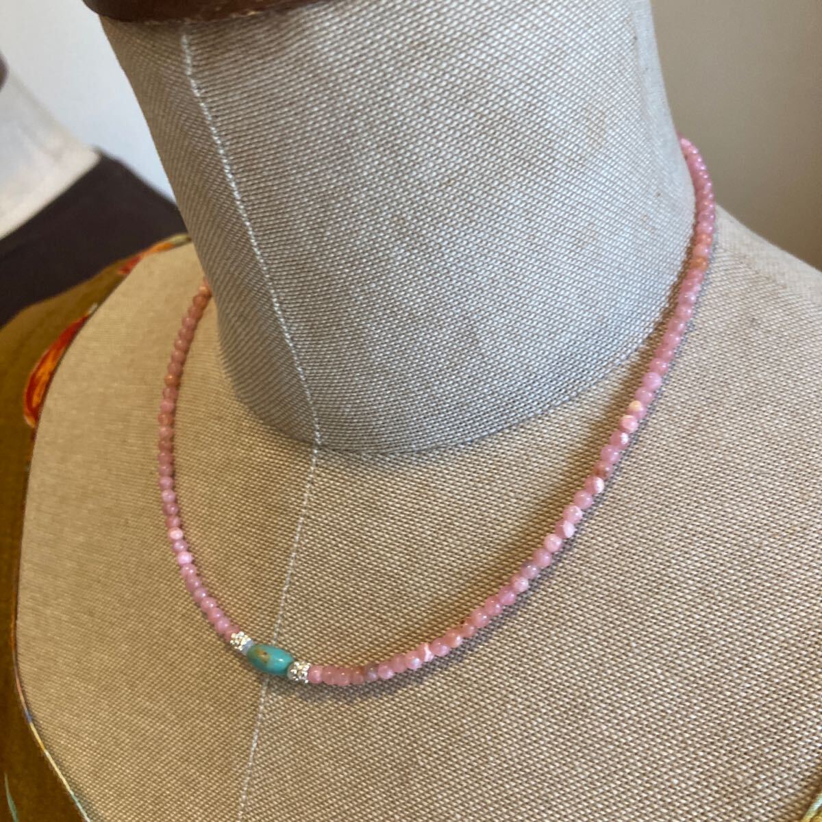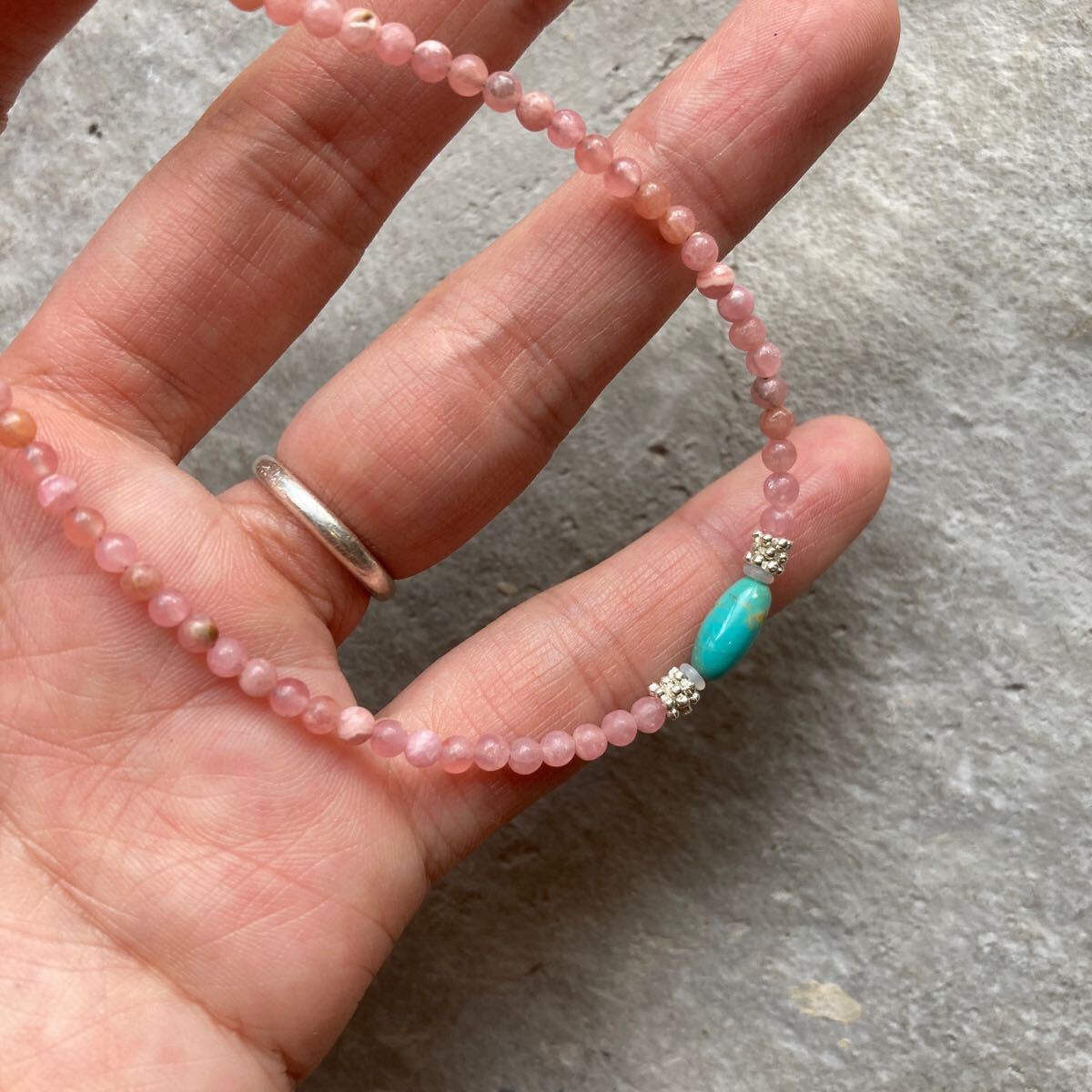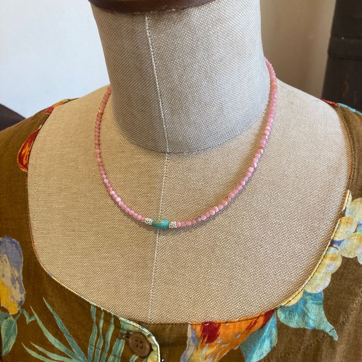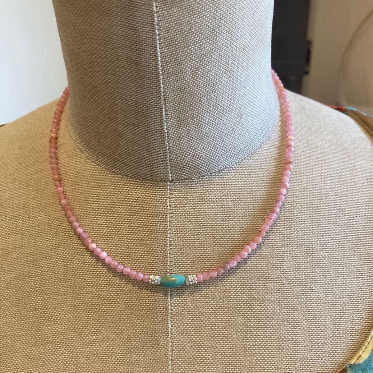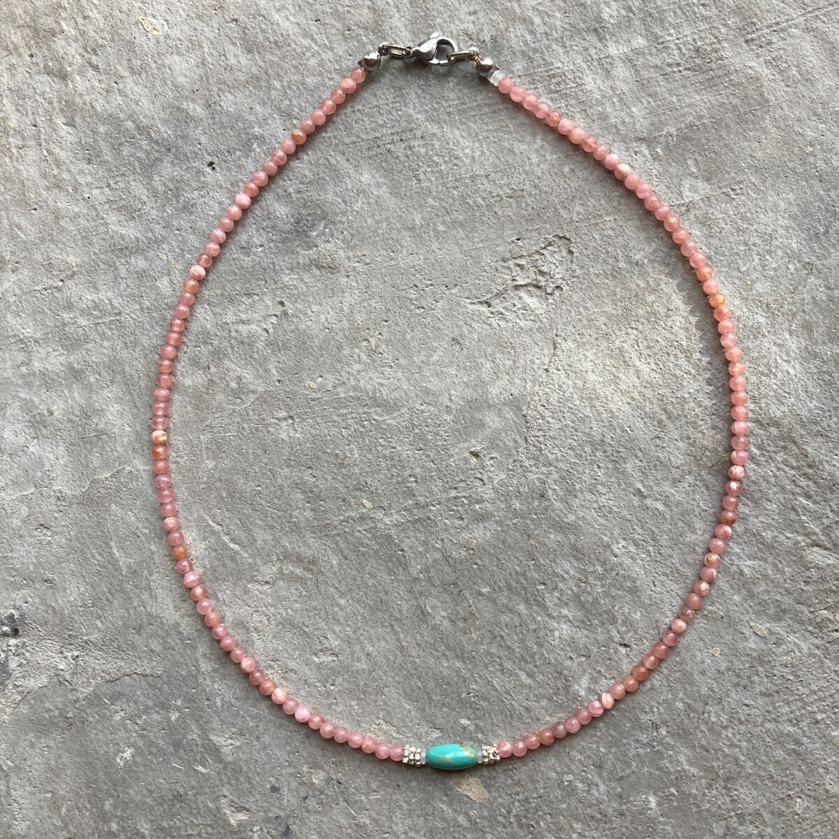 上質なインカローズと天然ターコイズを合わせたネックレスです。