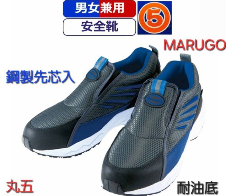 5248 ⑤マルゴ A種 安全靴|マンダムセーフティー#775|グレー|26㎝EEE|鋼製先芯入り|新品未使用|スリッポン|耐油底|安全スニーカー|丸五