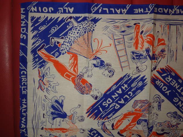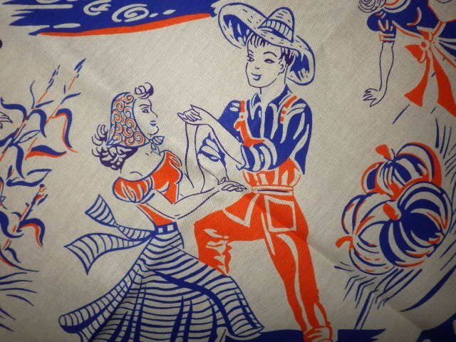 カラーはきなり×オレンジ×ネイビー系、素材はコットン、状態は未使用、サイズはおおよそ56cm×55cmくらい♪