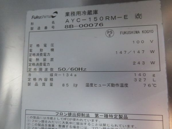 ◆フクシマ 2018年◆冷蔵コールドテーブル AYC-150RM-E(改) 100V 1500×600×800 サイズ:W1500×D600×H800mm 電 源:100V 有効内容積:327L 製品質量:85kg 出品にあたり動作確認・クリーニング済みです。 多少の傷・使用感等がありますので、予めご了承ください。 中古品ですので、画像をよくご確認の上、ご理解頂ける方のご入札をお願いいたします。 神経質な方はご入札をご遠慮ください。 気持ちの良いお取り引きにしたいと思いますので、ご不明な点等ございましたらお気軽にご質問ください。 | |