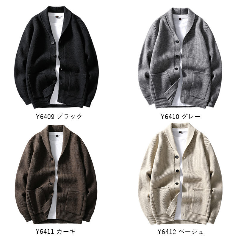 Y6410-M グレー 新品 カーディガン ウール混 ニット セーター 着心地抜群 柔らか 防寒 暖かさ 秋冬 厚手 メンズ カジュアル トップス
