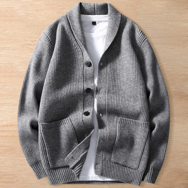 Y6410-M グレー 新品 カーディガン ウール混 ニット セーター 着心地抜群 柔らか 防寒 暖かさ 秋冬 厚手 メンズ カジュアル トップス