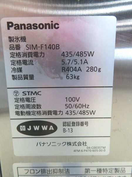 ◆パナソニック 2021年◆フレークアイス製氷機 SIM-F140B 100V 600×600×800 サイズ:W600×D600×H800mm 電 源:100V 製氷能力:約130/150kg/日(周囲温度20℃ 水温15℃) 約110/130kg/日(周囲温度30℃ 水温25℃) 貯氷量:約28kg(自然落下時・約19kg) 製品質量:63kg 定 価:992,000円(税抜) ご参考メーカーホームページはこちらです。よろしければご覧下さい! 送料無料(北海道・沖縄・離島は除く) 出品にあたり動作確認・クリーニング済みです。 多少の傷・使用感等がありますので、予めご了承ください。 中古品ですので、画像をよくご確認の上、ご理解頂ける方のご入札をお願いいたします。 神経質な方はご入札をご遠慮ください。 気持ちの良いお取り引きにしたいと思いますので、ご不明な点等ございましたらお気軽にご質問ください。 | |