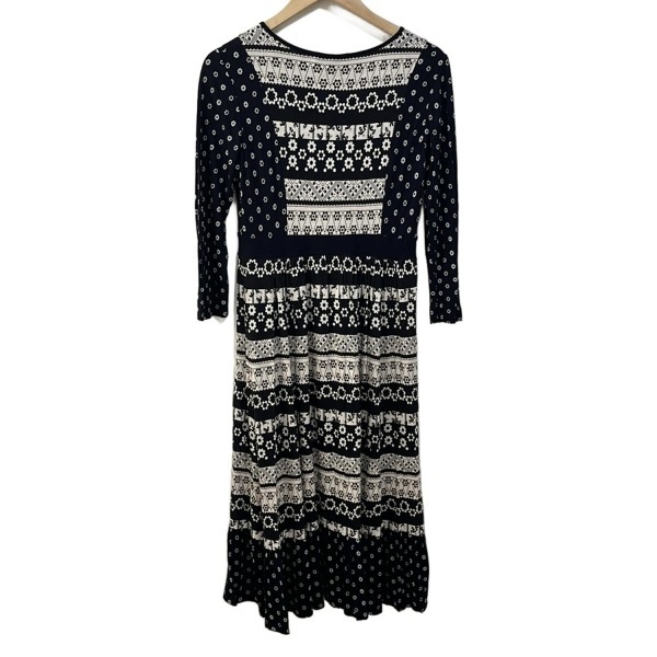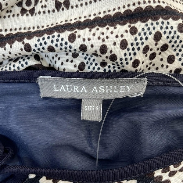 ローラアシュレイ LAURAASHLEY サイズ9 M - ダークネイビー×白×ダークブラウン レディース 長袖/ロング/花柄 ワンピース