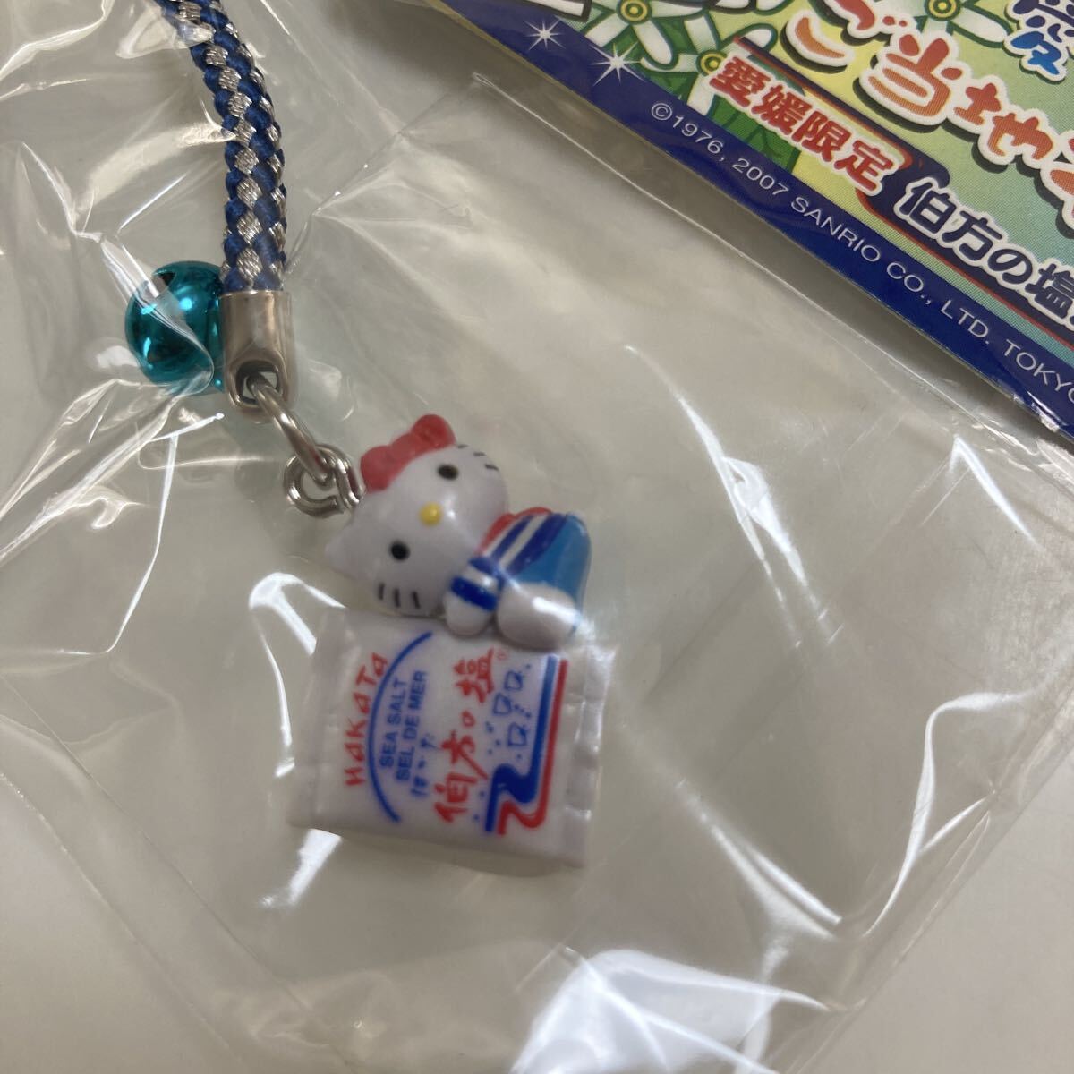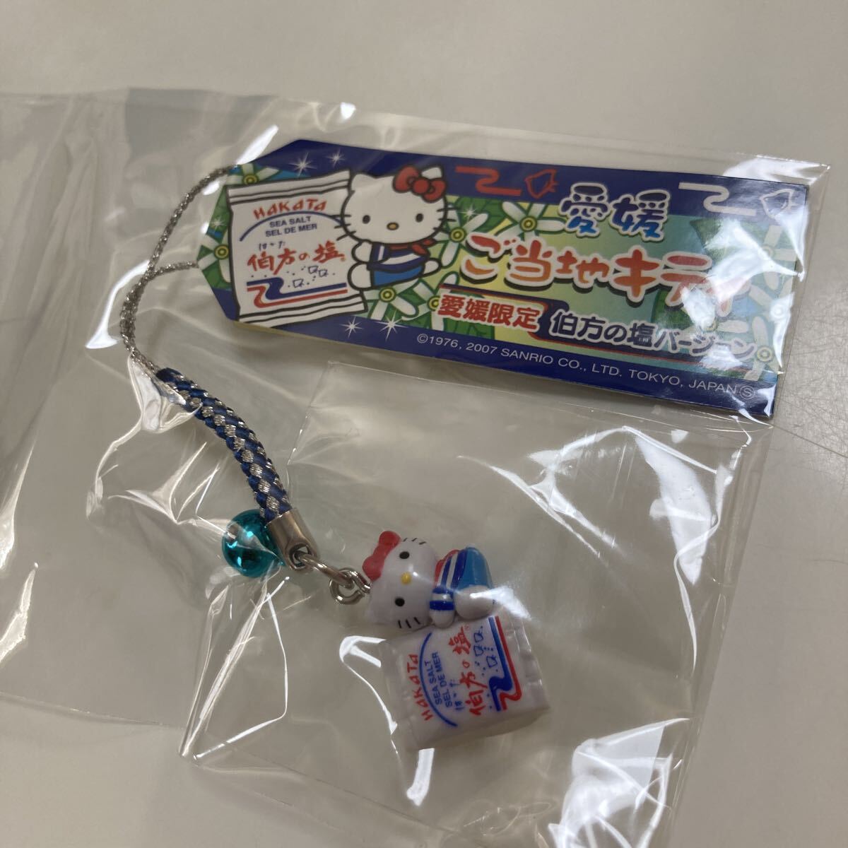 2007年 のご当地キティ 愛媛限定 伯方の塩バージョン のストラップ根付けです。