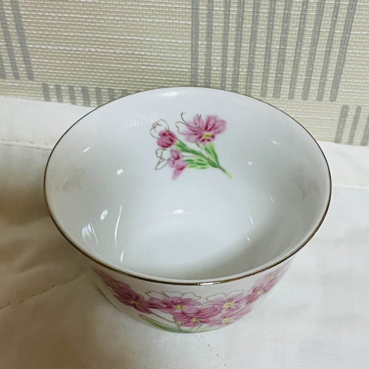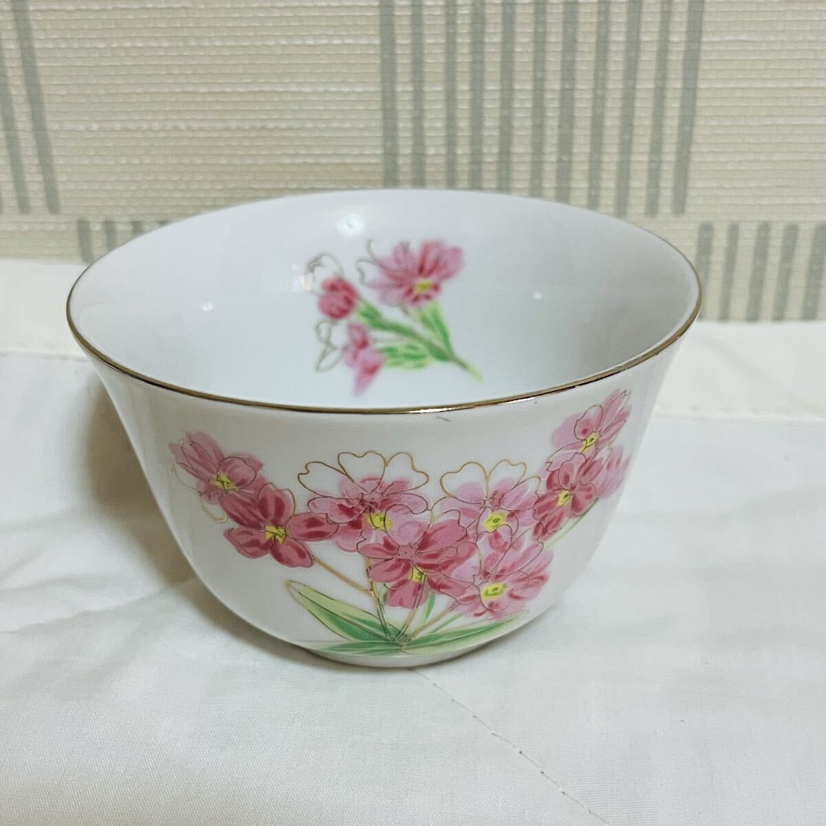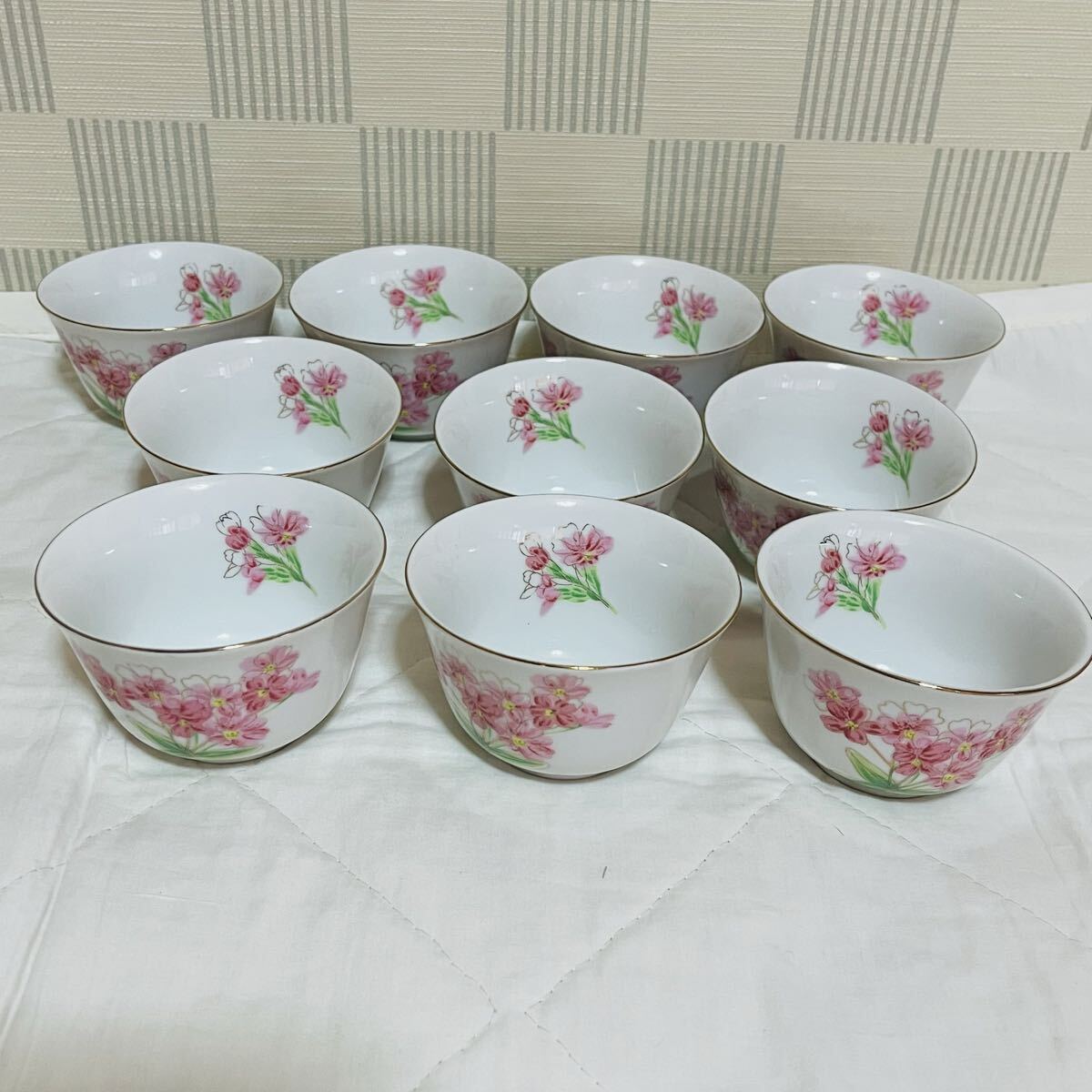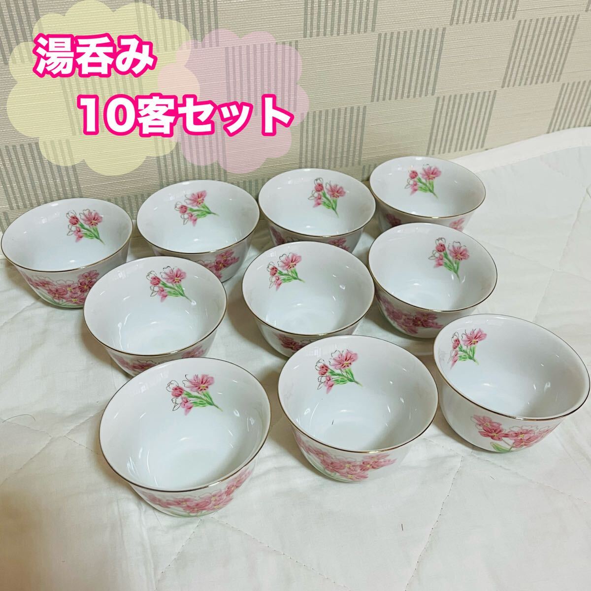可愛らしいピンクのお花柄が入った湯呑み、10客セットです。