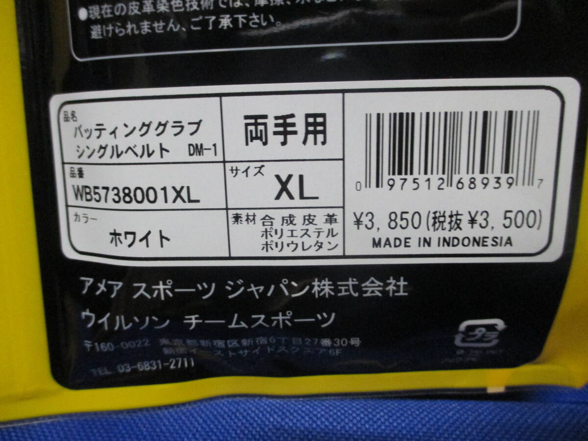 送料無料◆バッティング手袋◆XL◆ホワイト◆即納◆27㌢◆ディマリニ◆ウィルソン◆WB5738001◆洗える◆野球◆ソフトボール◆フィット