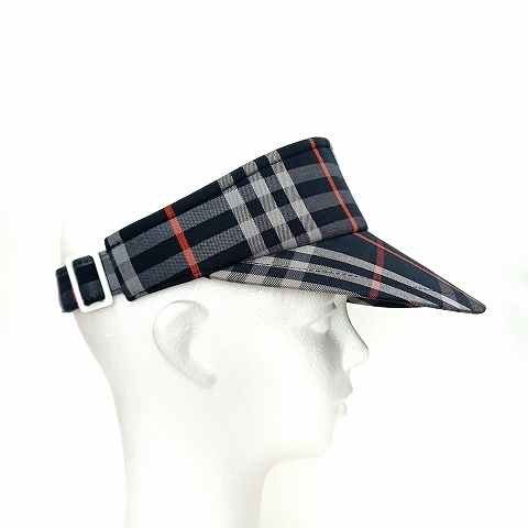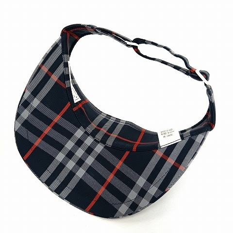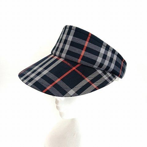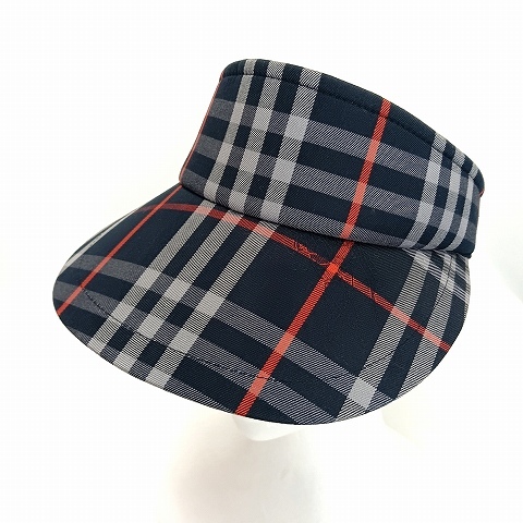 バーバリーズ Burberrys チェック柄 サンバイザー シャドーホース ロゴ 刺? ネイビー系 帽子 ☆AA★ レディース