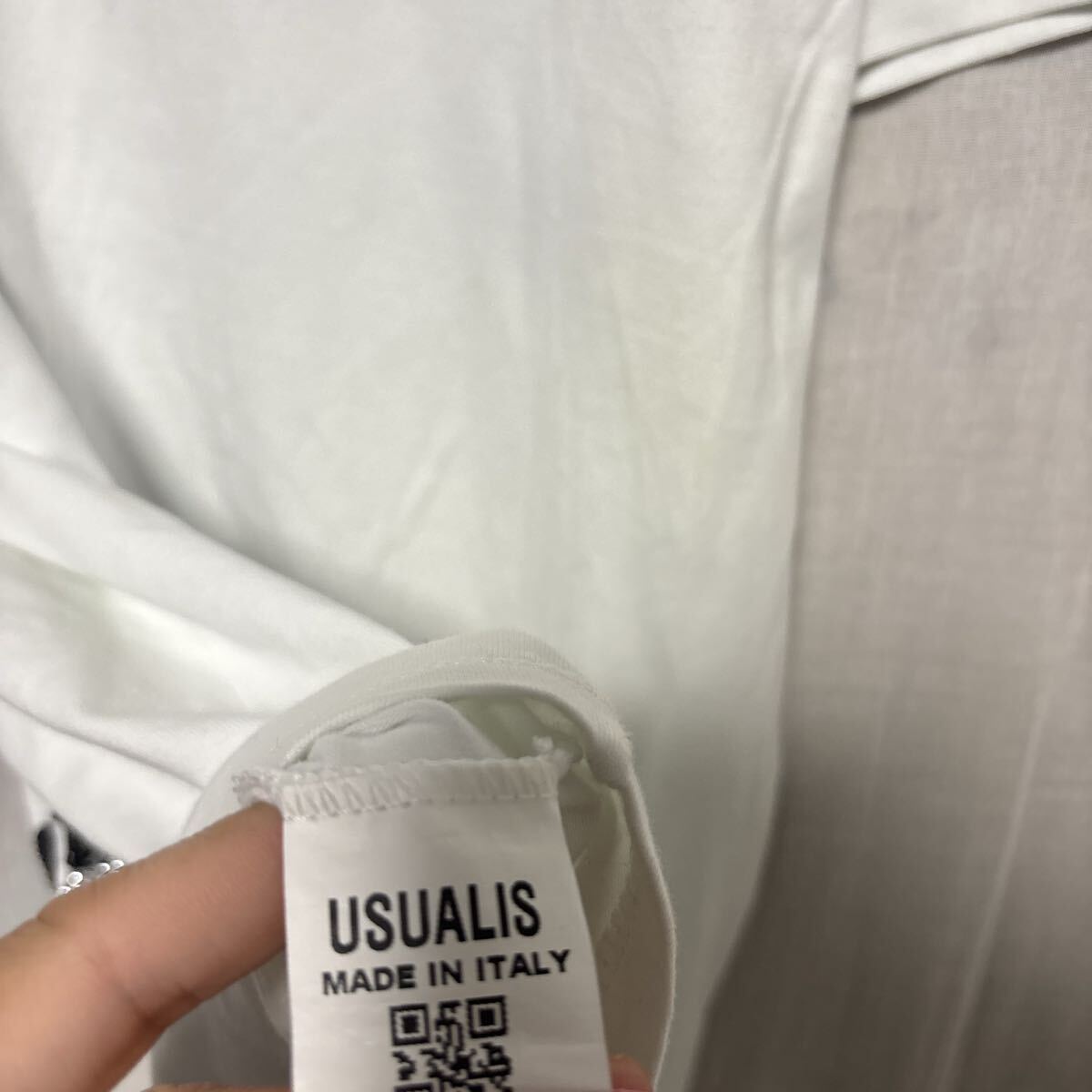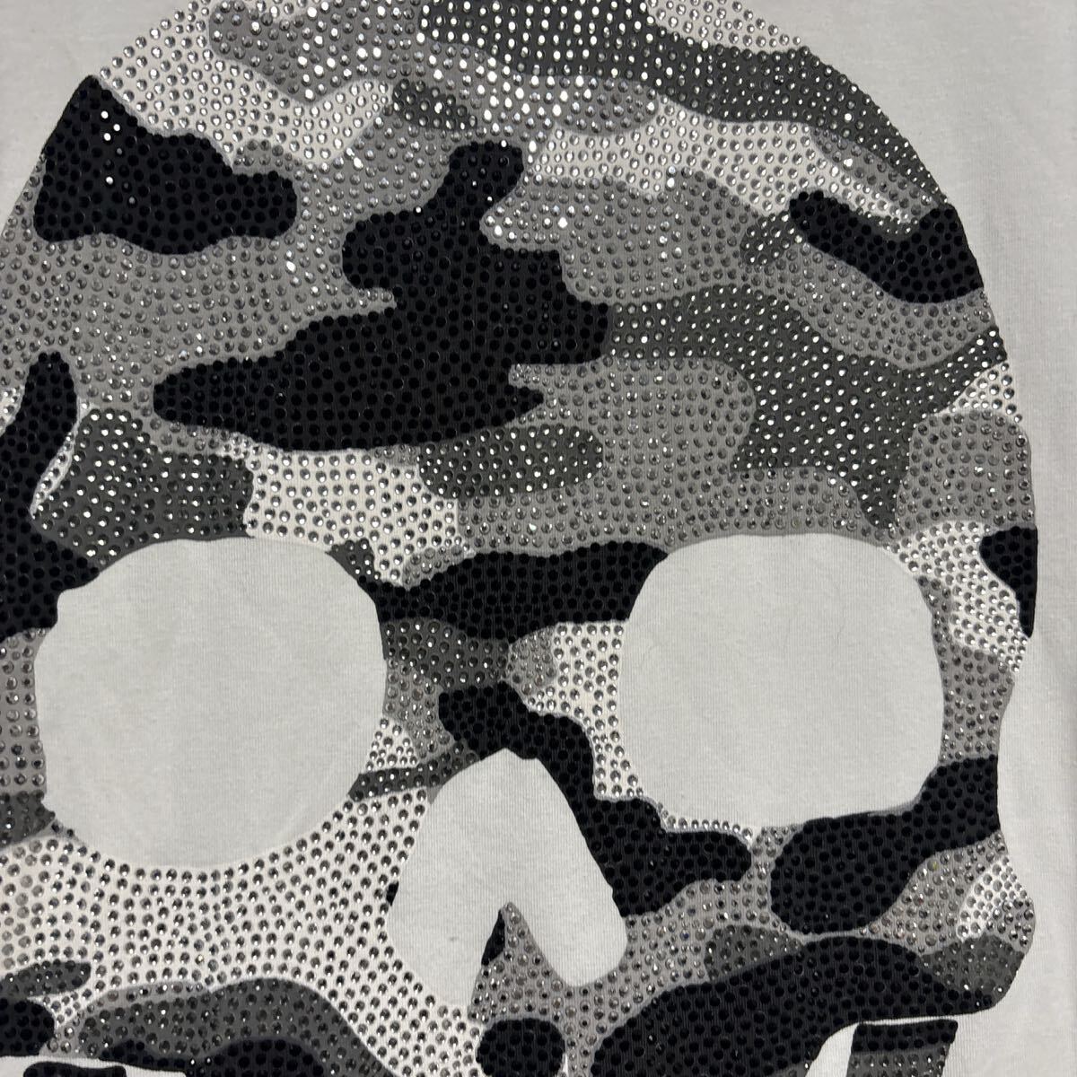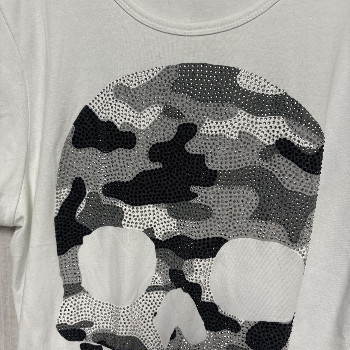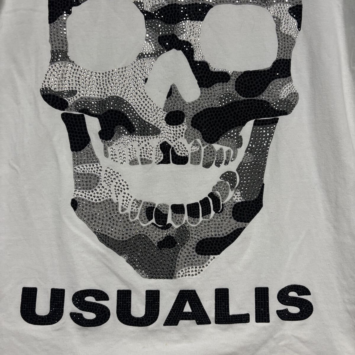 USUALIS スカル Tシャツ ホワイト スタッズ Y2K キラキラストーン