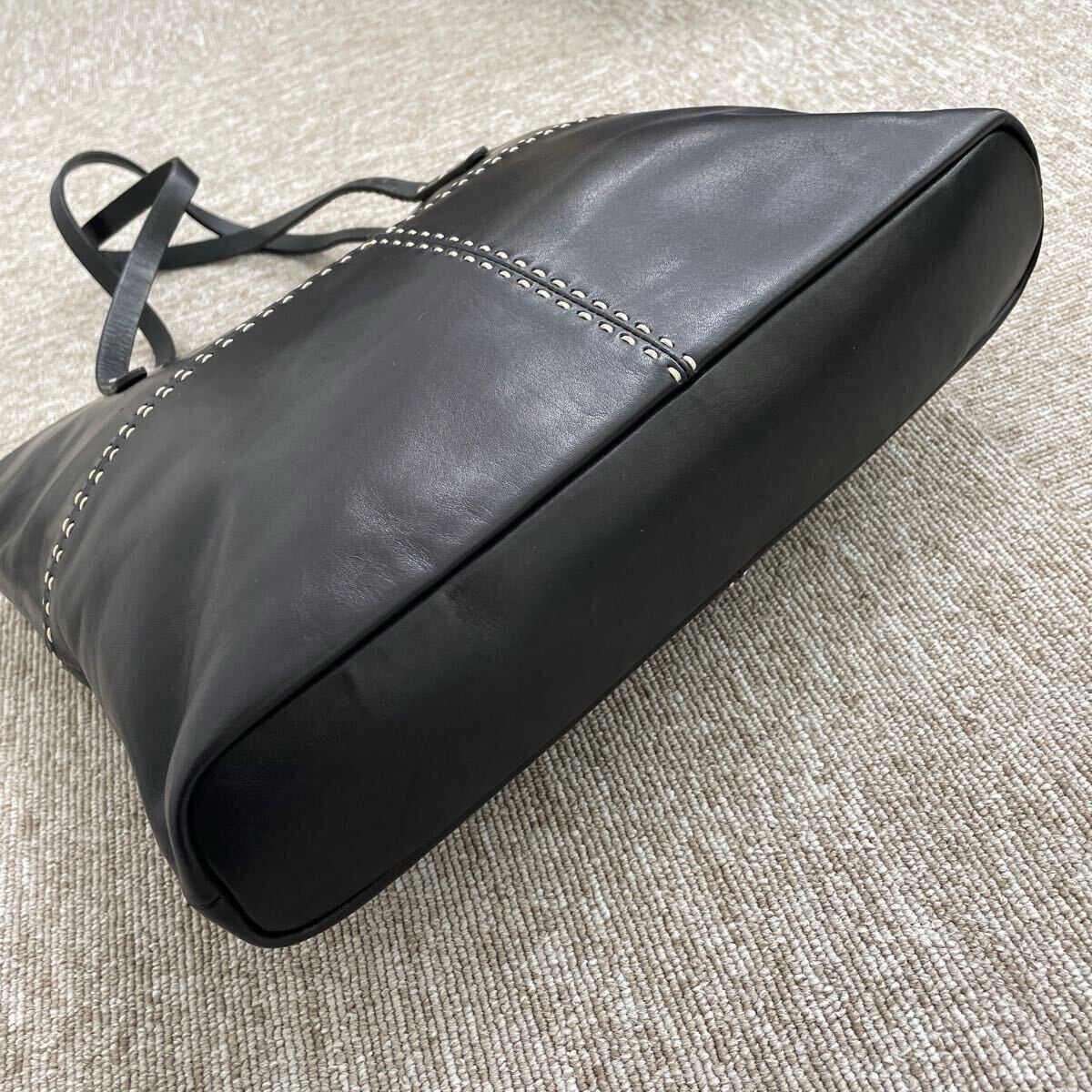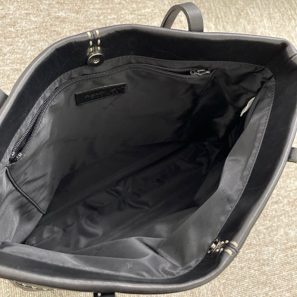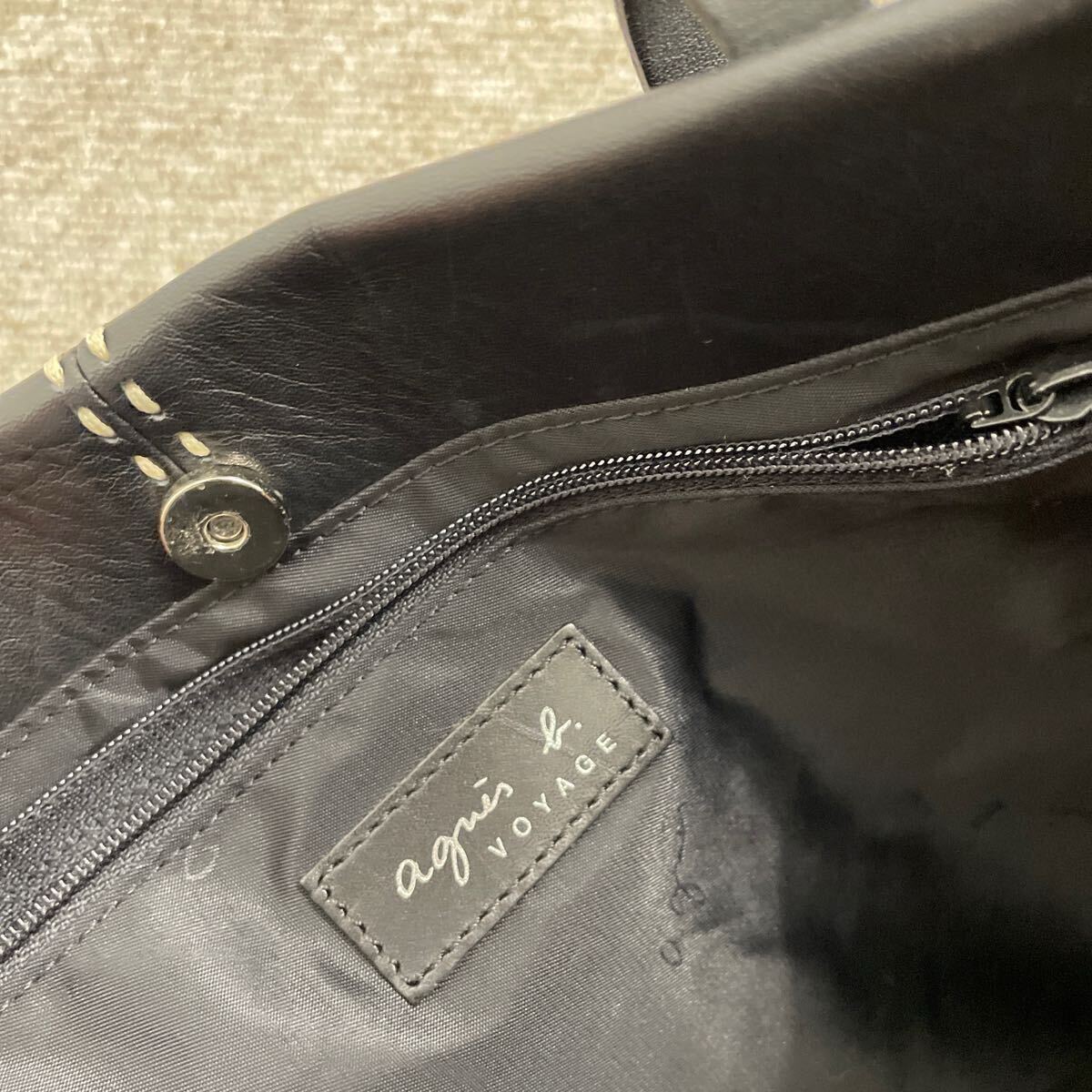 【86】美品 agnes b. アニエスベー 黒 レザー トートバッグ ショルダーバッグ 肩掛け 本革 ブラック レザーバッグ ステッチ ビジネス