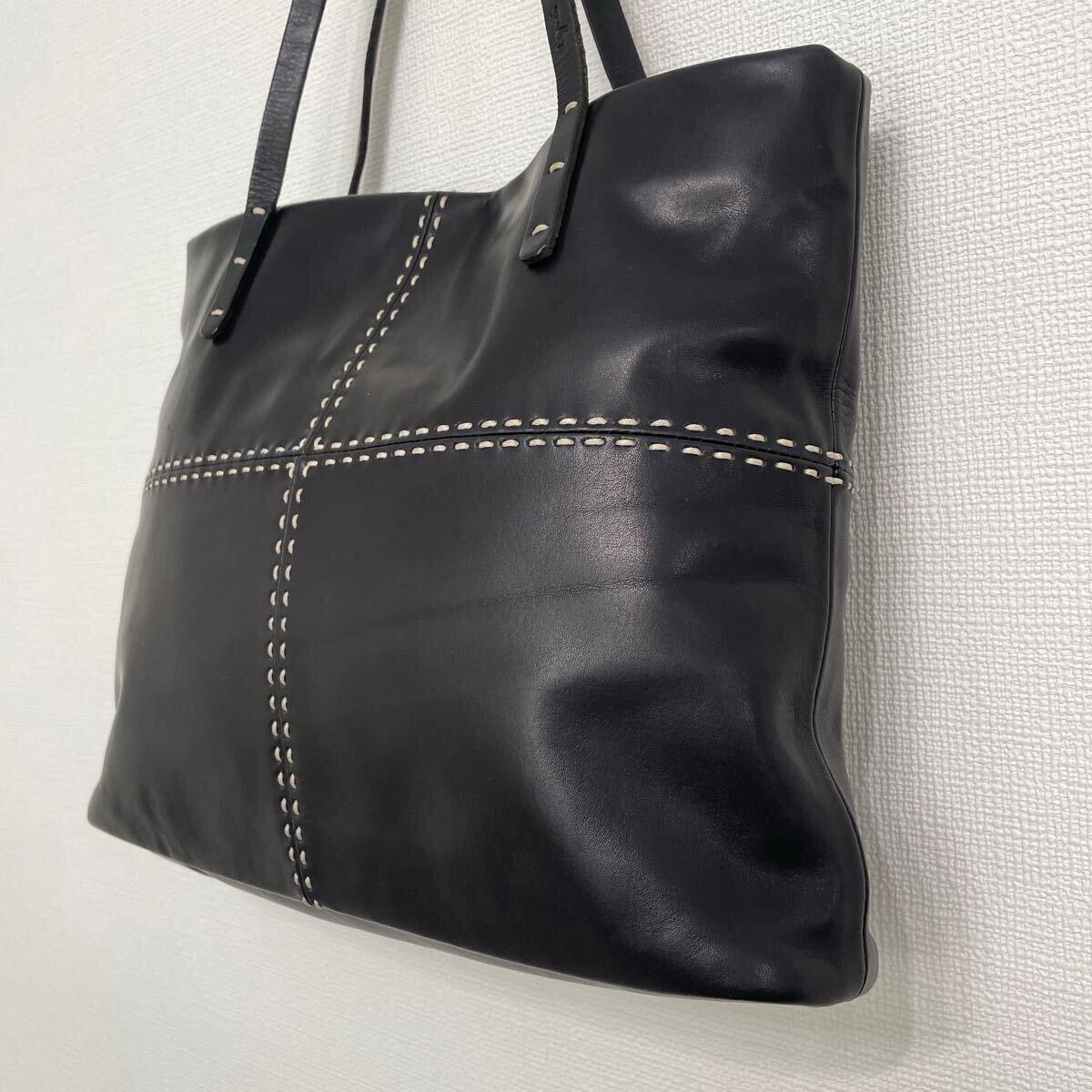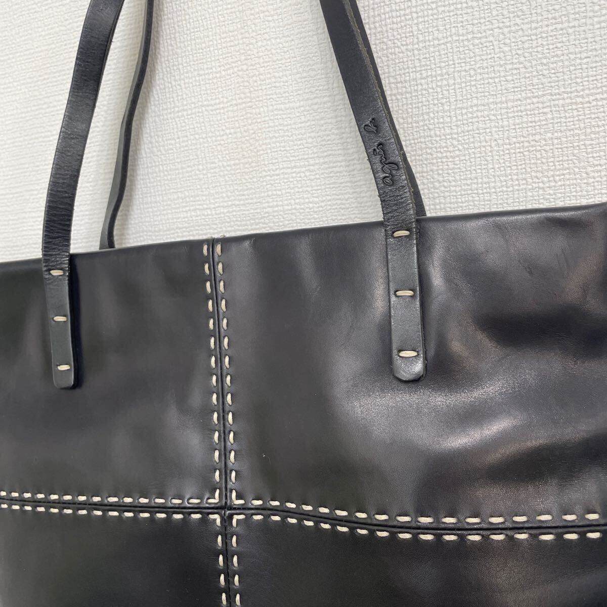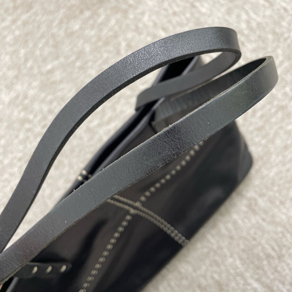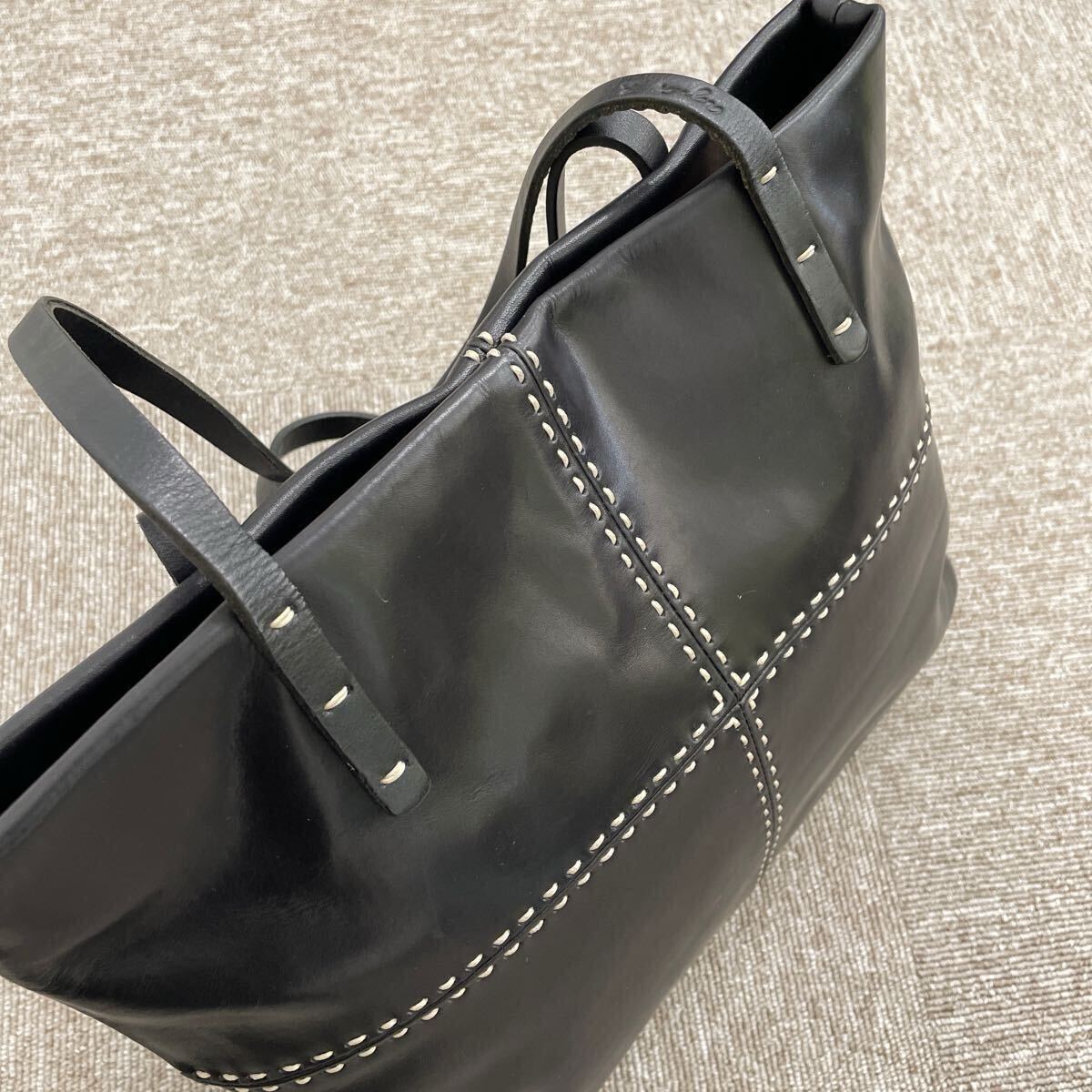 【86】美品 agnes b. アニエスベー 黒 レザー トートバッグ ショルダーバッグ 肩掛け 本革 ブラック レザーバッグ ステッチ ビジネス