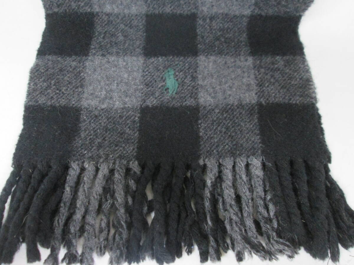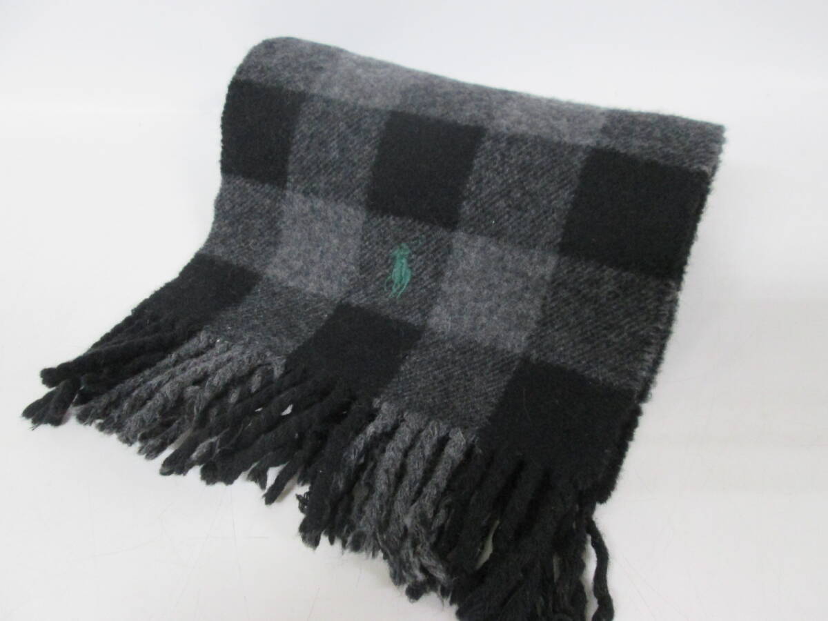 【0905o O19216】 POLO RALPH LAUREN ポロ ラルフローレン バッファローチェック マフラー イタリア製 ブラック系