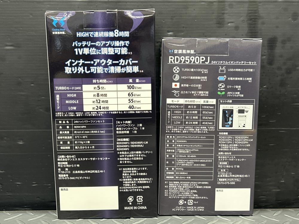 空調風神服 ■商品名 空調服用ファン+バッテリー ■型番 RD9590PJ RD9410PH |