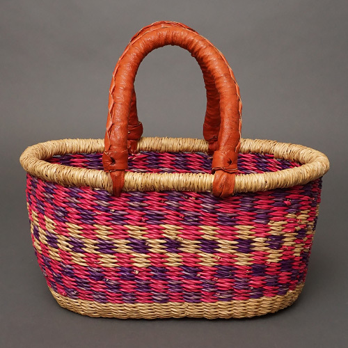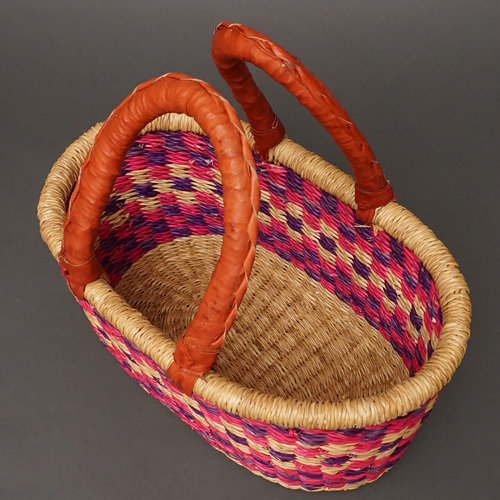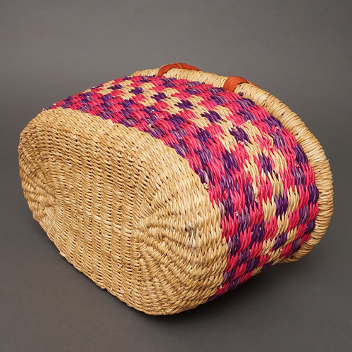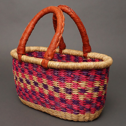 アフリカ ブルキナファソ  楕円 マルシェ バスケット カラー Mサイズ小さめ  No.15 かご かごバッグ アフリカ雑貨