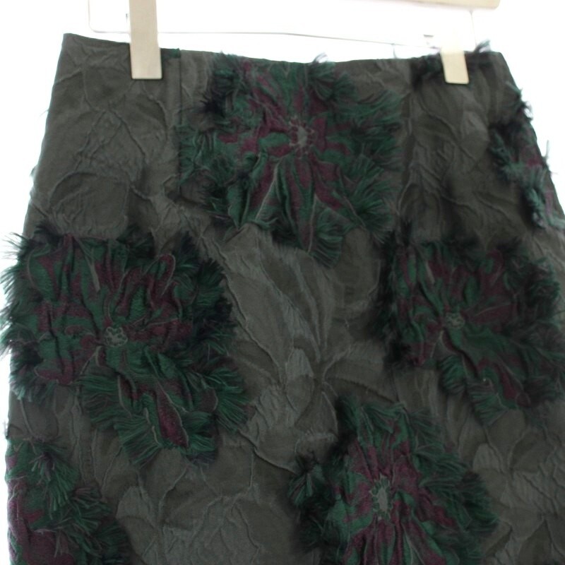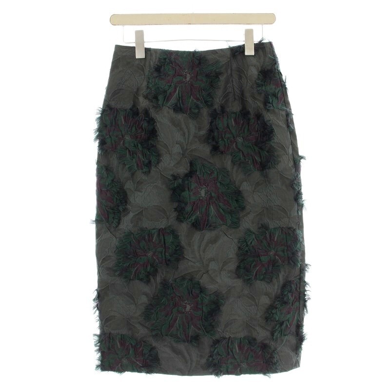 未使用品 エポカ EPOCA フィオーレフリンジジャガードスカート M5S08-818-78 ひざ丈 スカート 40 グレー 緑