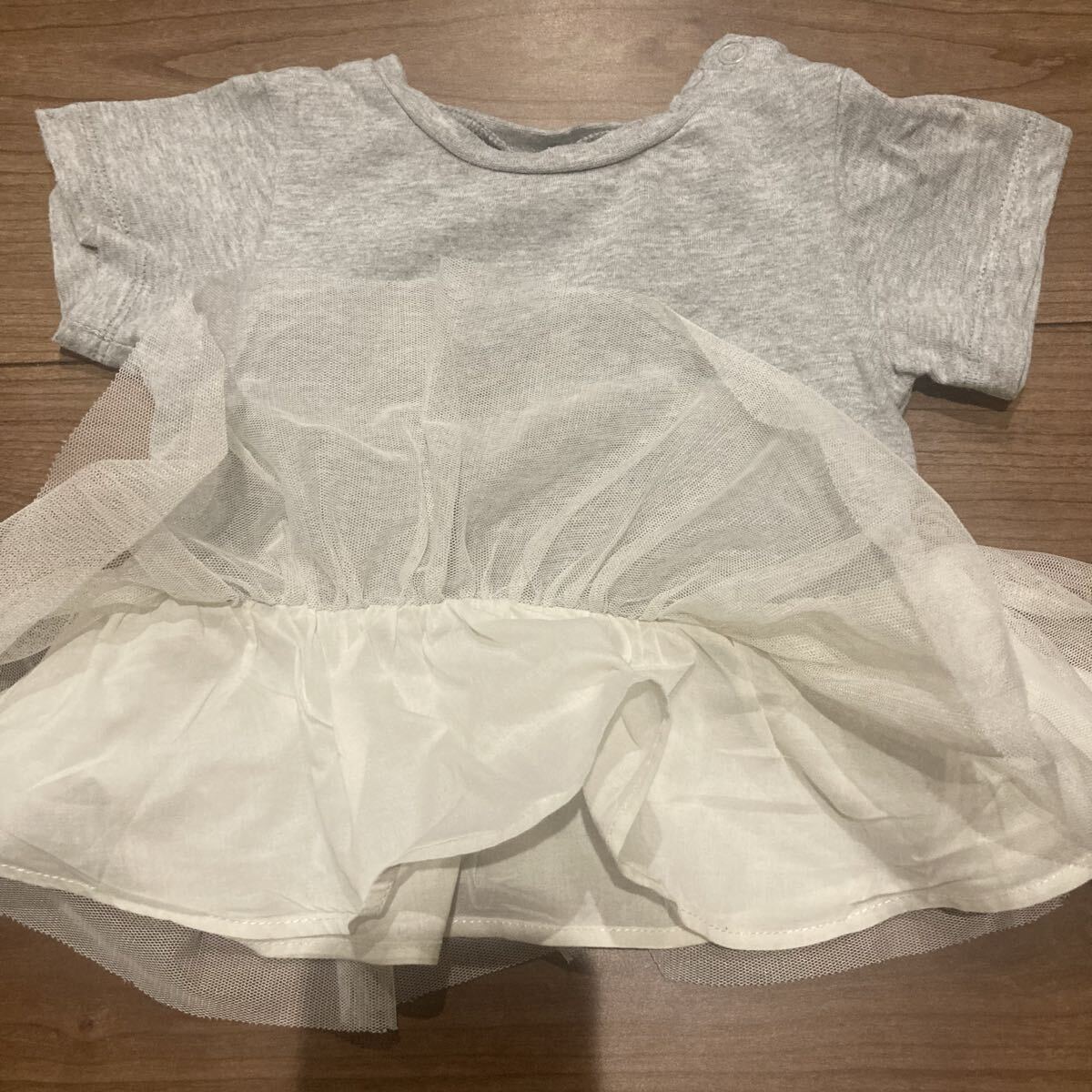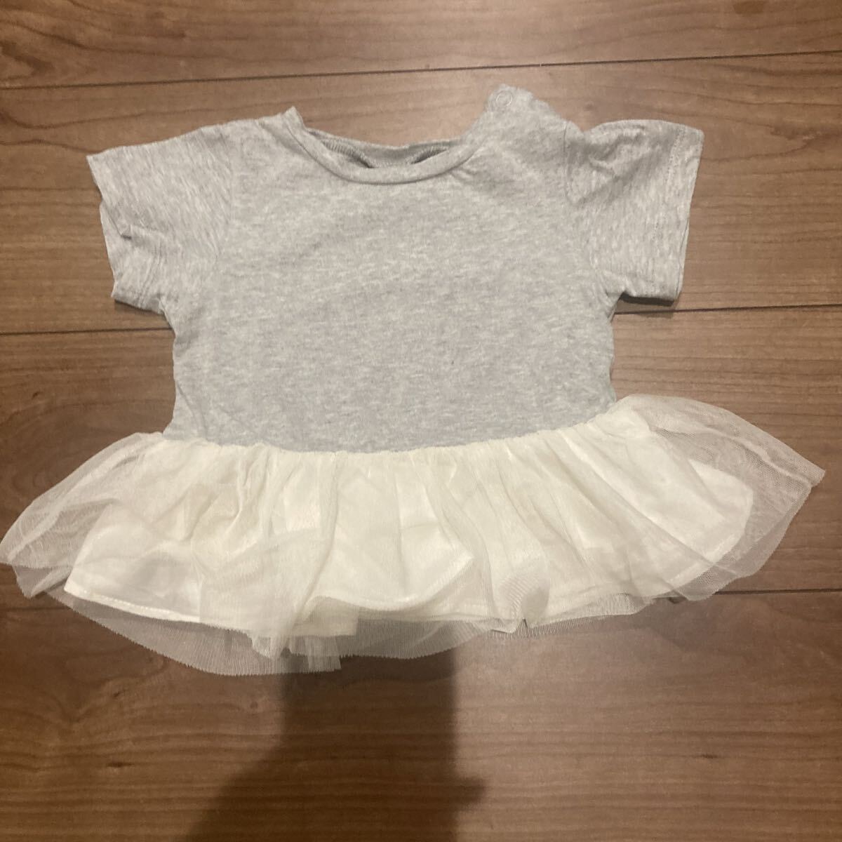 チュチュ付きのグレーTシャツ、スナップボタン付き