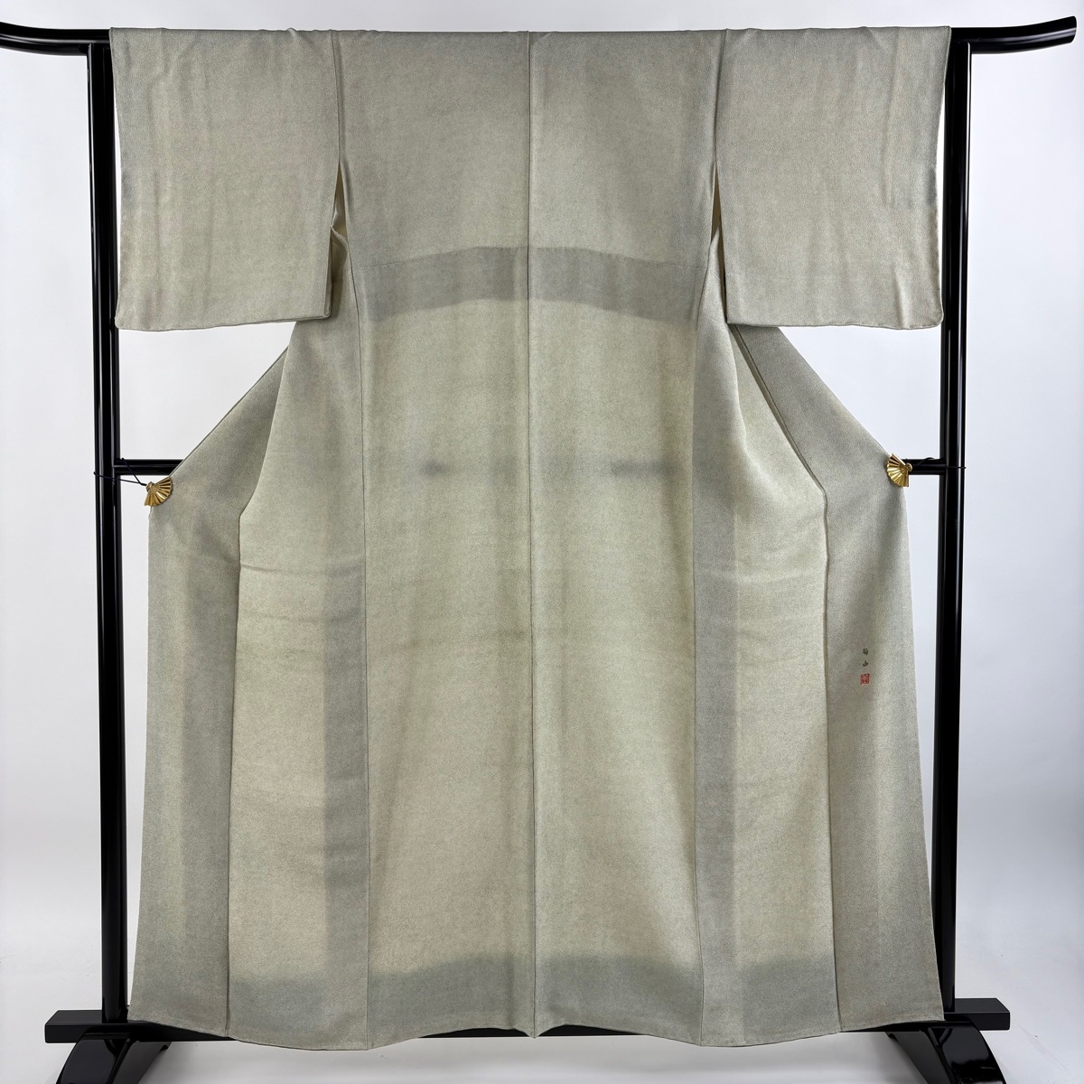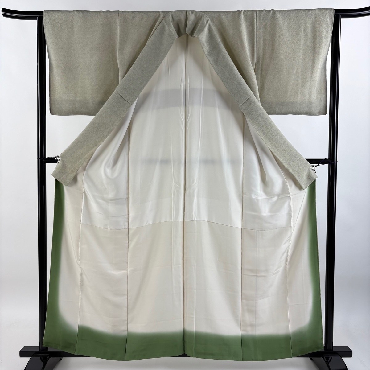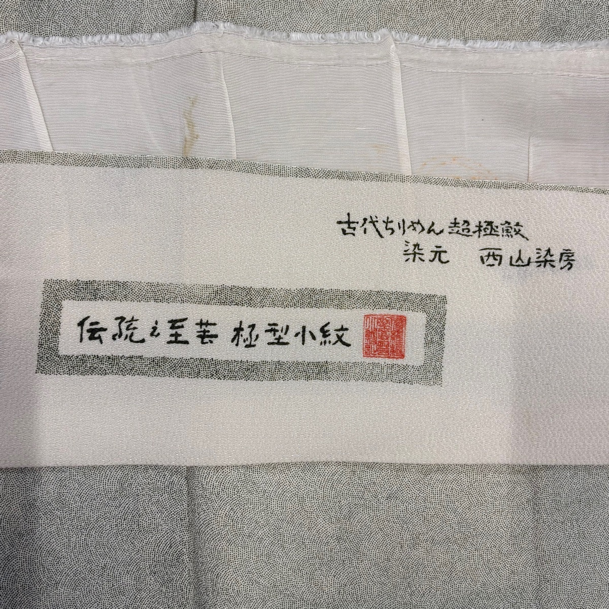 | 江戸小紋 秀品 落款 鮫 縮緬 薄緑 袷 身丈159 裄丈64 M 正絹 【中古】 |