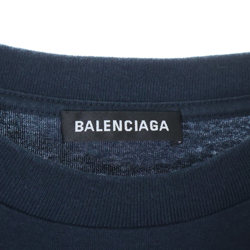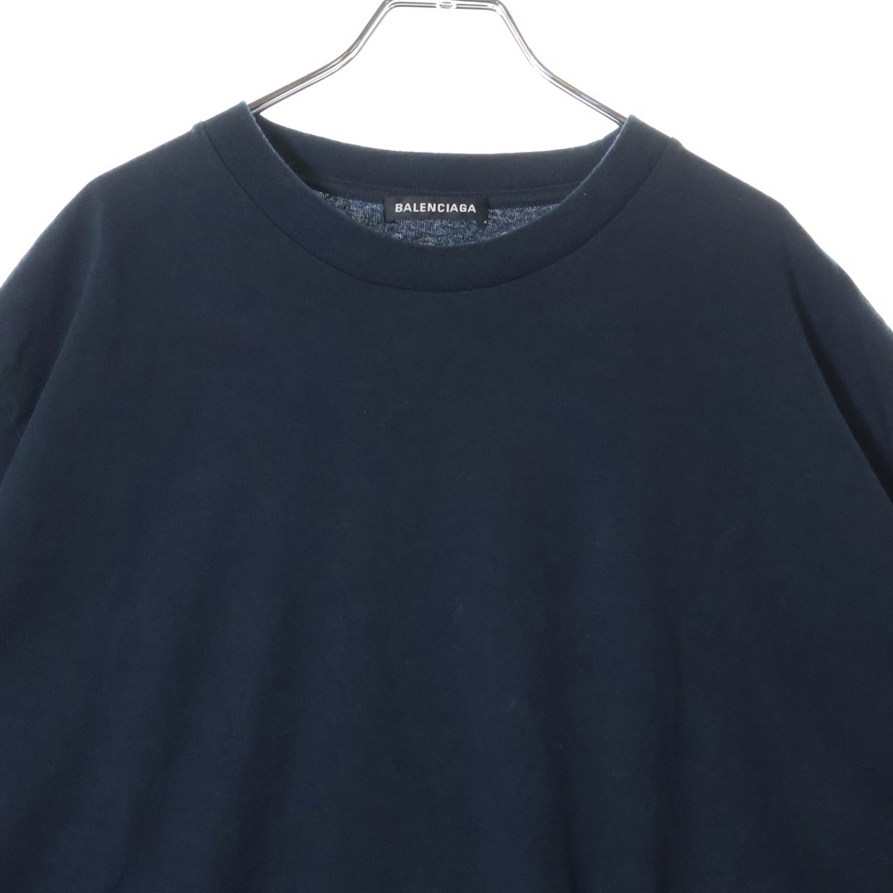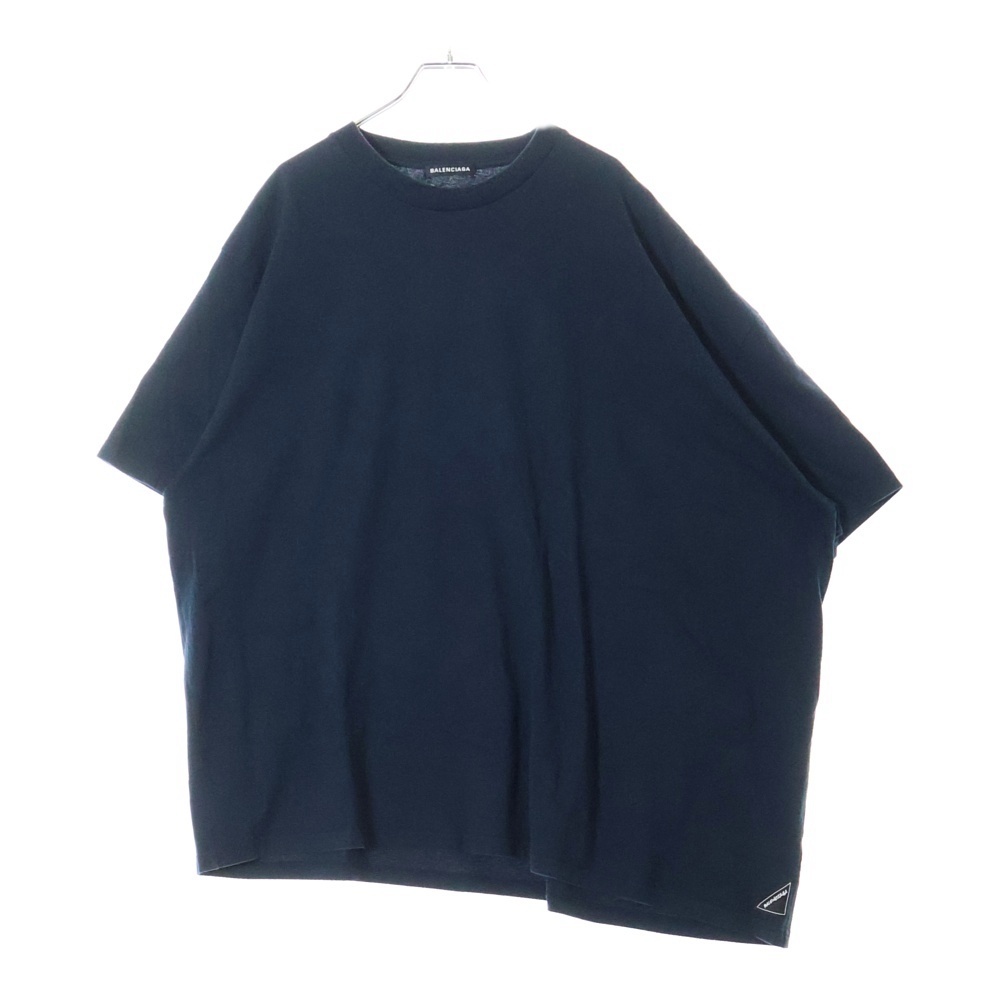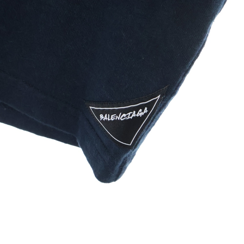 BALENCIAGA バレンシアガ 19AW 583917 TFV04 裾 ロゴタグ付 アシンメトリー 半袖 Tシャツ ダークネイビー