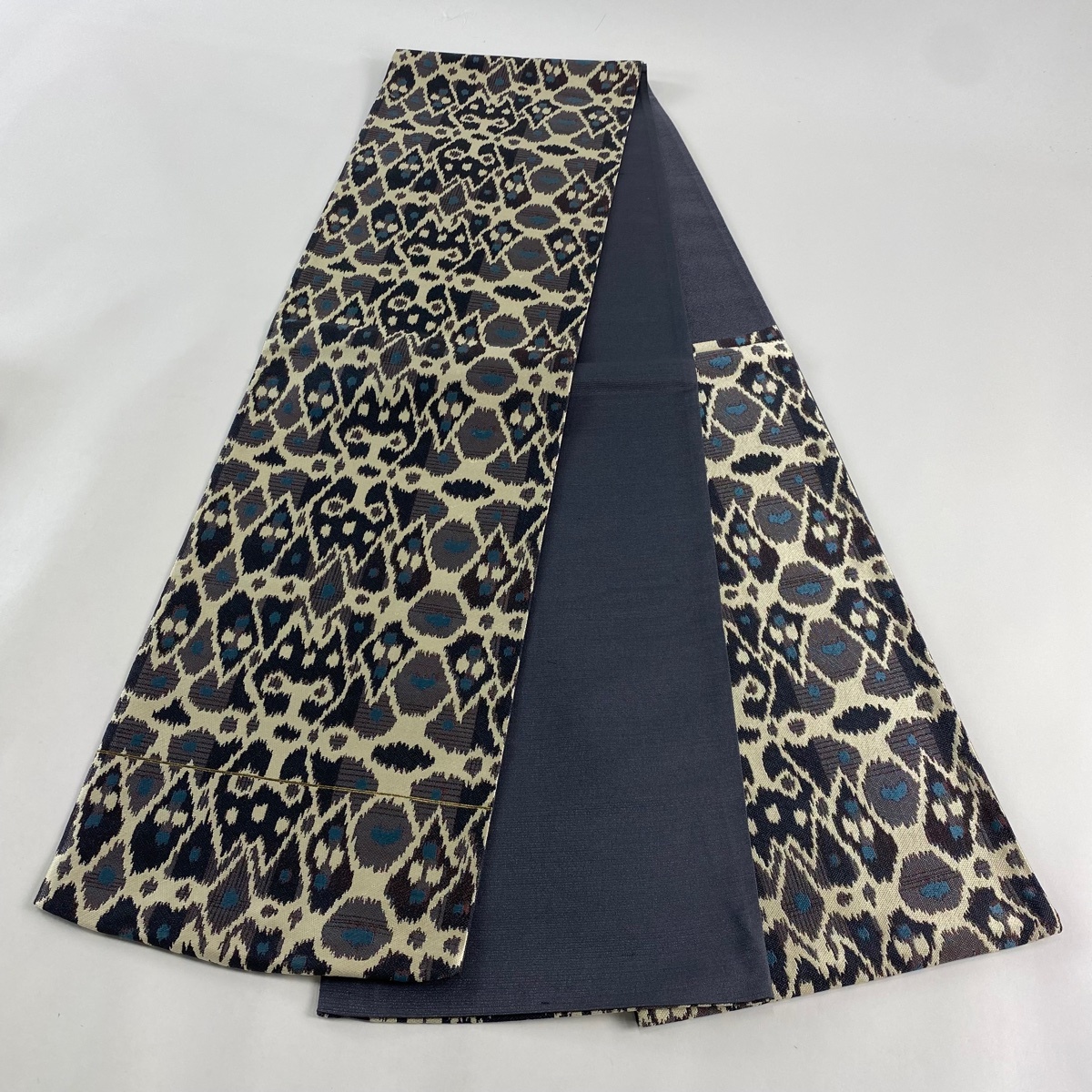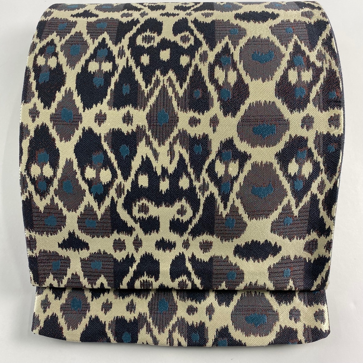 袋帯 美品 名品 証紙 幾何学模様 ベージュ 六通 正絹 【中古】 |