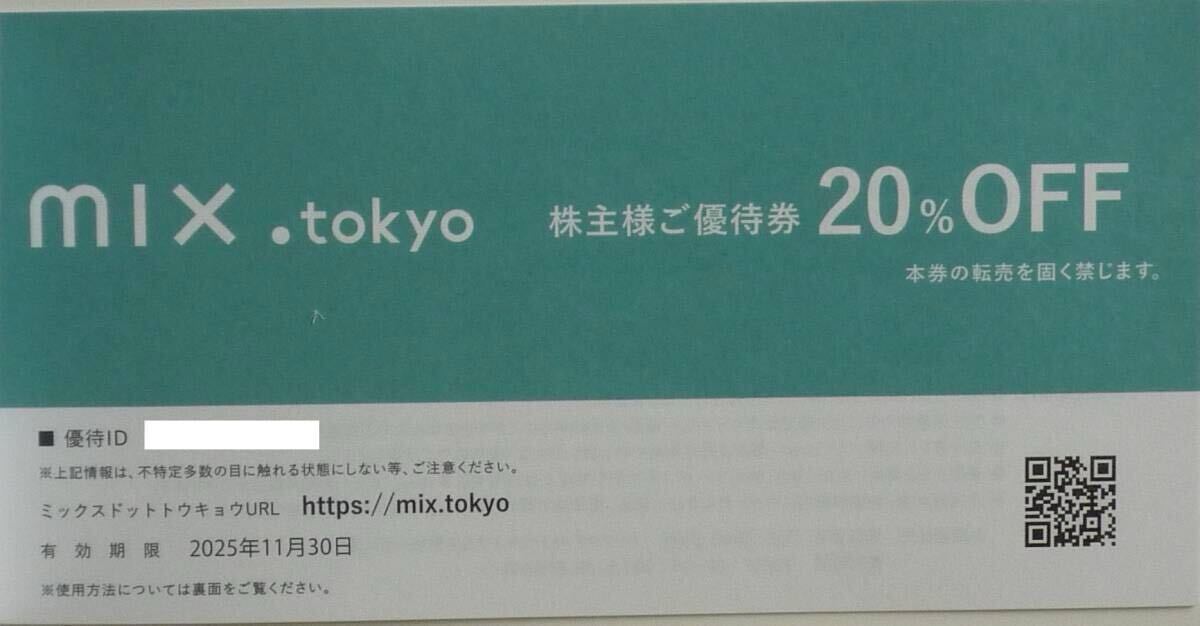 ■㈱TSIホールディングスの株主優待のMIX.Tokyoの株主優待券20%OFF券です。