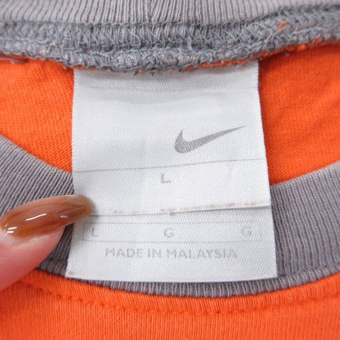 【商品名】 XL★古着 ナイキ NIKE 長袖 ビンテージ Tシャツ メンズ 00年代 00s ネコ スポーツ コットン クルーネック オレンジ