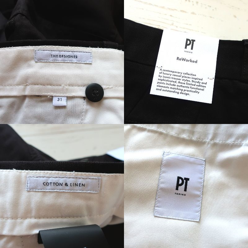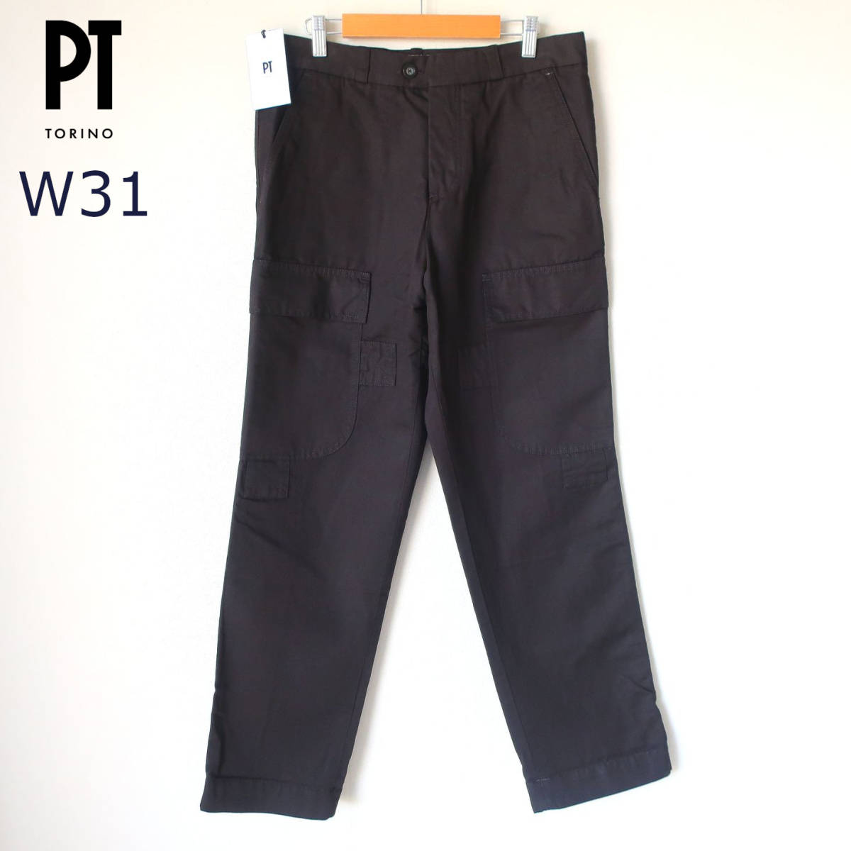 新品 未使用 PT TORINO リネン混 上質 カーゴパンツ チノパン イタリアン スラックス パンツ PT01 PT05 黒 ブラック メンズ W31 Mサイズ