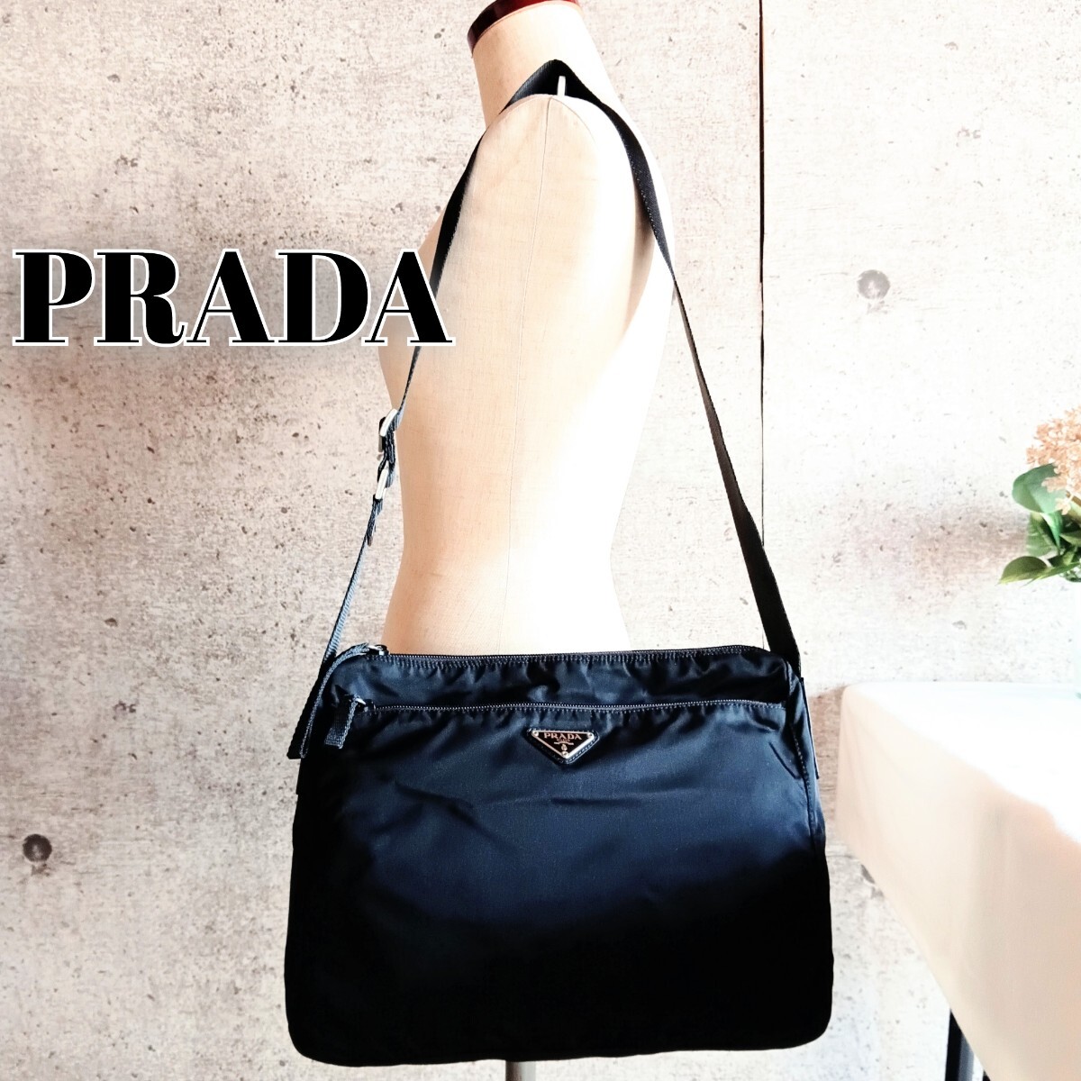 【商品】 PRADA プラダ ナイロン レザー 軽量 ショルダーバッグ 大容量 ポシェット 斜め掛け 肩掛け クロスボディ ボディバッグ 鞄 トライアングル 三角ロゴ イタリア製 定価 約20万円
