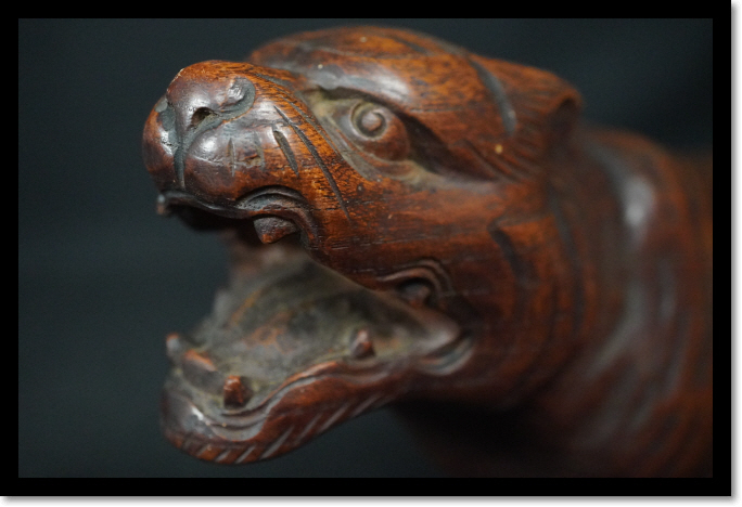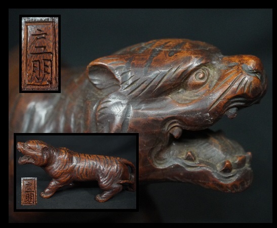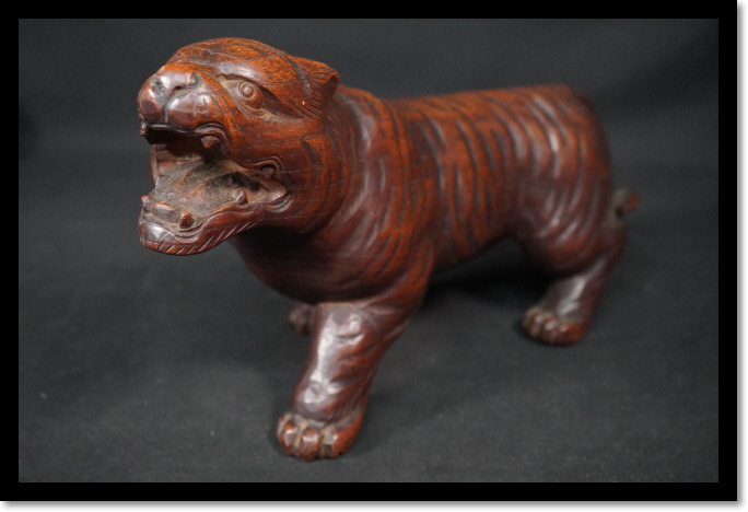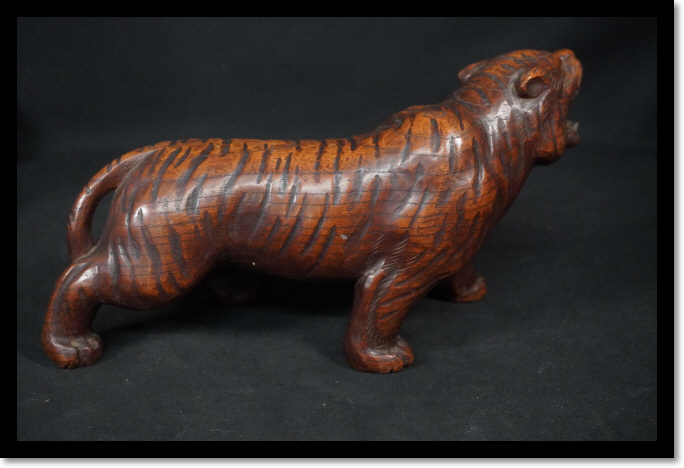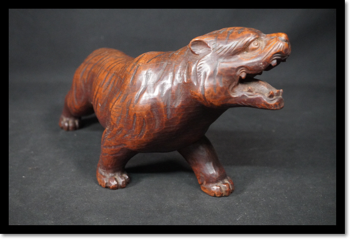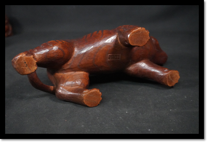 木彫 在銘 虎 置き物 干支 和骨董 彫刻 在銘 戸ユ朋 |