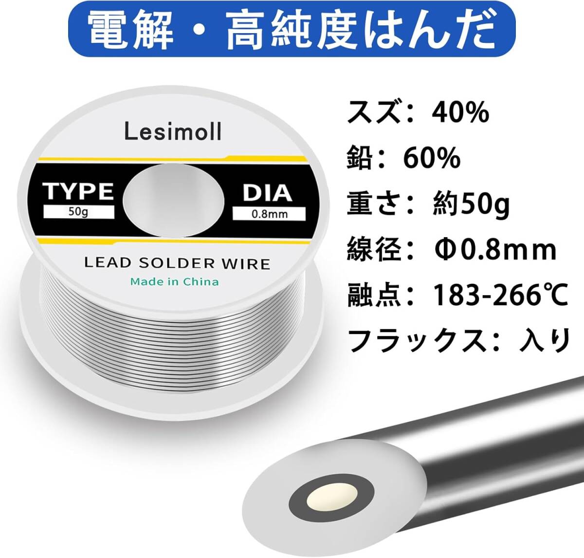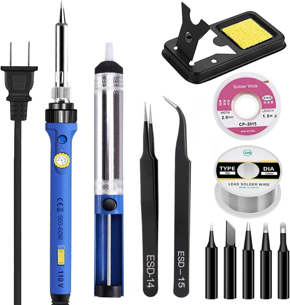 Lesimoll はんだごて ハンダゴテ 14-in-1はんだごてセット 溶接工具 精密半田ごて 電気ハンダゴテ 60W/110V 温度調節可能(200~480℃) 5つ無酸素銅こて先 50g高純度はんだ ON/OFFスイッチ付き 半田吸取器 日本語取扱説明書付き 家電修理・回路基板・基盤などにの電子作業・電気DIY用(14点セット)