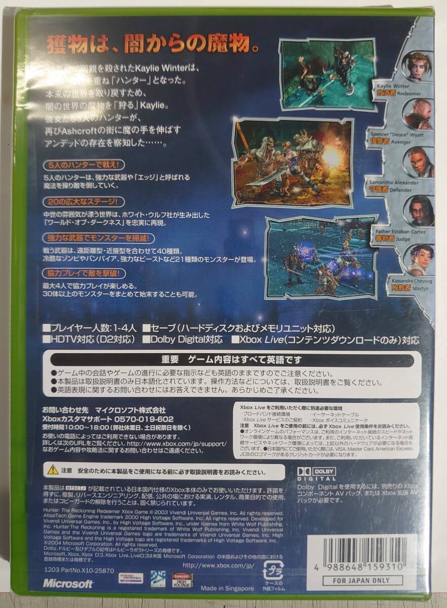 ★Xbox★ 新品未開封 HUNTER The Reckoning REDEEMER (Xboxワールドコレクション)
