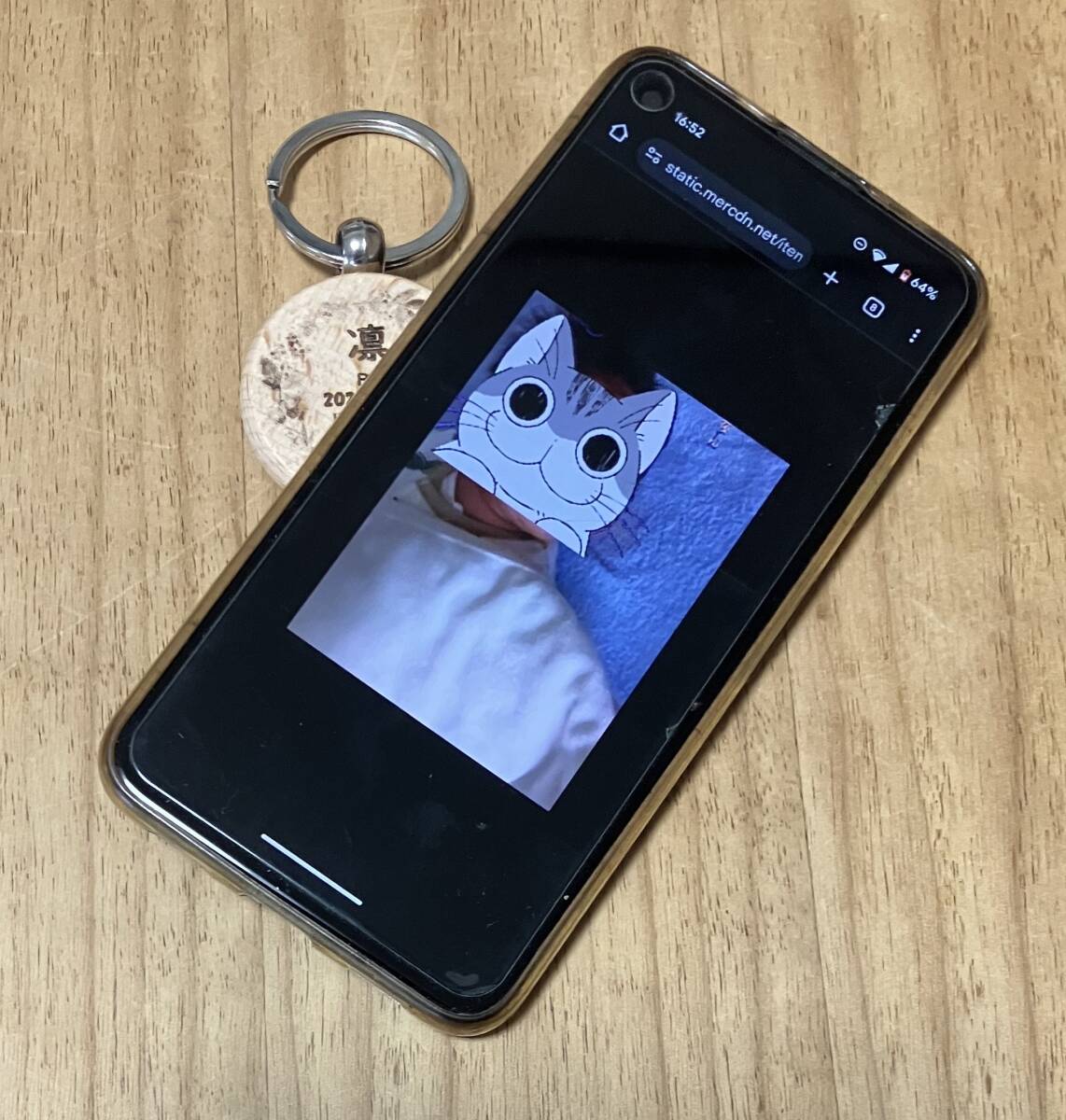 市販木製丸型キーホルダーに、NFCタグを装着。