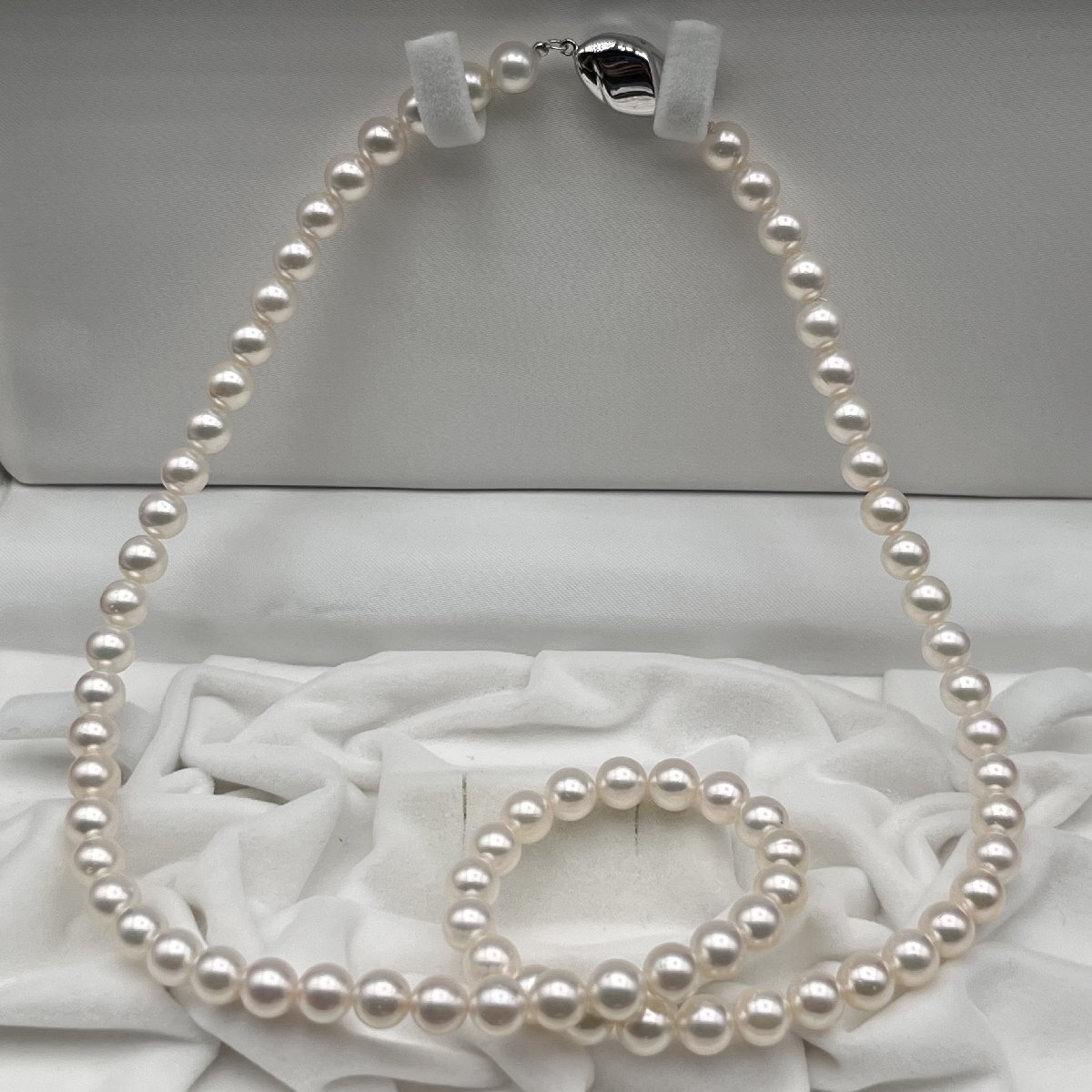 1円 送料無料 オーロラ 花珠 クラス ネックレス 6.5-7.0mm アコヤ真珠 あこや Pearl necklace 照り強 本真珠 【1957921-0906】
