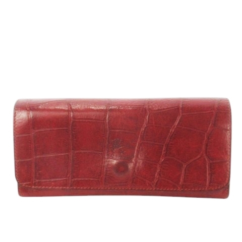 イルビゾンテ IL BISONTE 長財布 ロングウォレット 小銭入れあり レザー 革 クロコ型押し ロゴ型押し 赤 レッド /CK23 ■GY11
