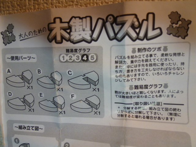 大人のための木製パズル 難易度4 新品同様・展示品C