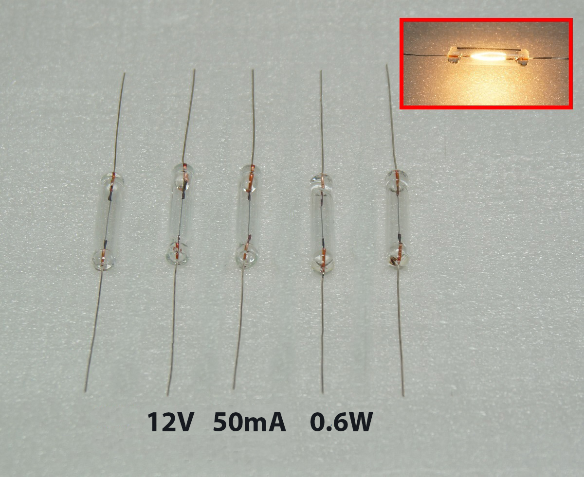 新品 電球 12V 50mA 0.6W 5個セット ガラス管ヒューズ型 電球 フィラメントランプ