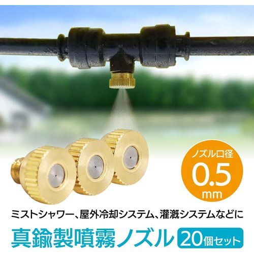 ENN LLC 噴霧ノズル 20個セット 霧吹き ミストノズル 散水ノズル 真鍮ミストノズル 点滴灌漑 芝生 ガーデニング ミストシャワー 屋外冷却システム用  0.5mm  93