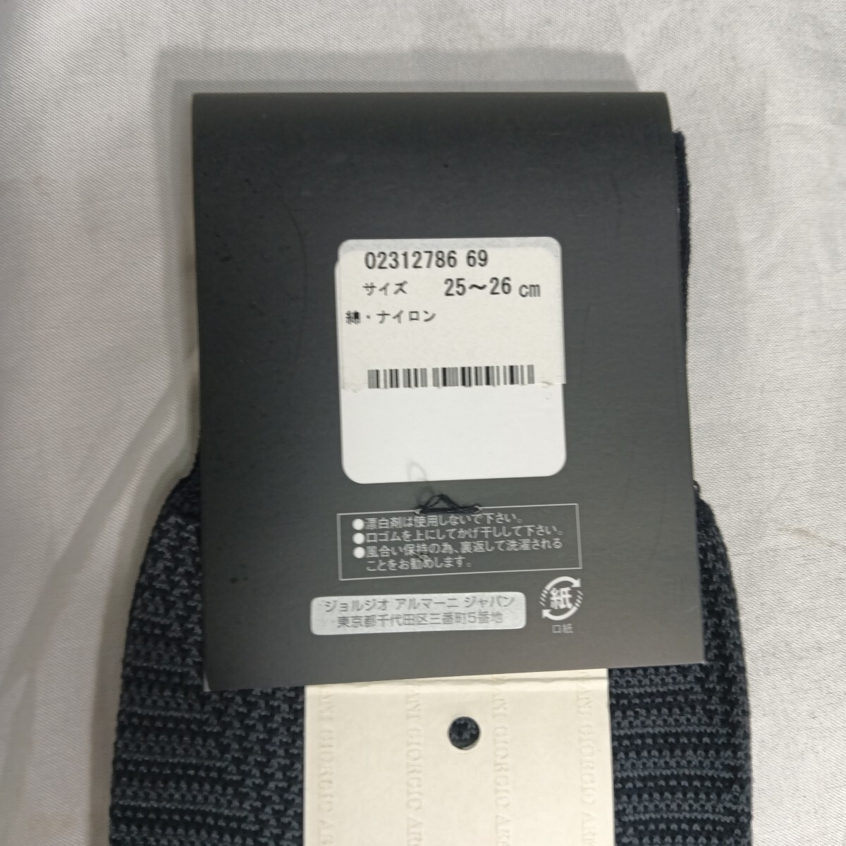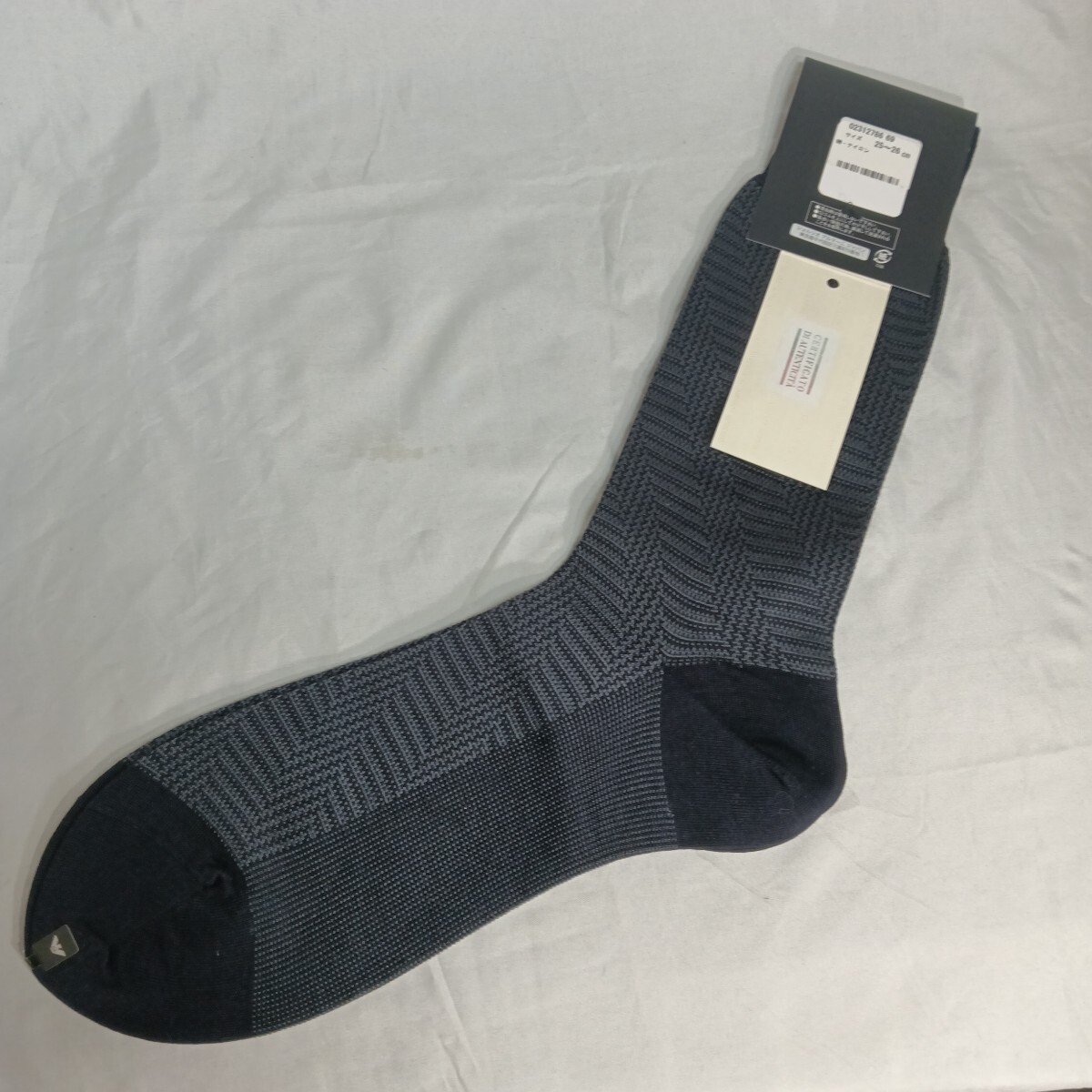 エンポリオアルマーニ(ジョルジオアルマーニジャパン)の靴下です。サイズは、25〜26センチです。素材は、綿、ナイロンです。未使用ですが自宅保管品です。