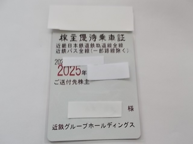 ◆近畿日本鉄道株主優待乗車証(定期券式)電車全線・バス全線の出品です。 ◆本定期証は、近鉄電車全線(一部路線・葛城山ロープウェイを除く。)および 近鉄バス全線(一部路線・高速バス等を除く。)にご乗車いただけます。 ◆持参人はどなたでも利用でき性別も問われません。 ◆使用期限 2025年11月30日までとなります。 ご利用方法をご存じの方のみご入札下さい。 ◆ノークレーム・ノーリターンとなります。 |