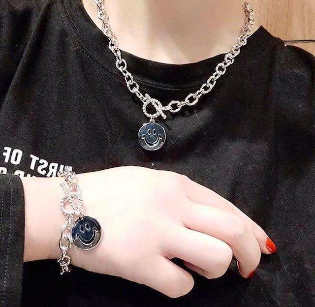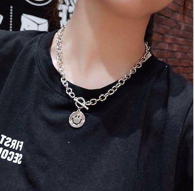 スマイルネックレス ニコちゃん 韓国 ロック シルバー メンズ レディース
