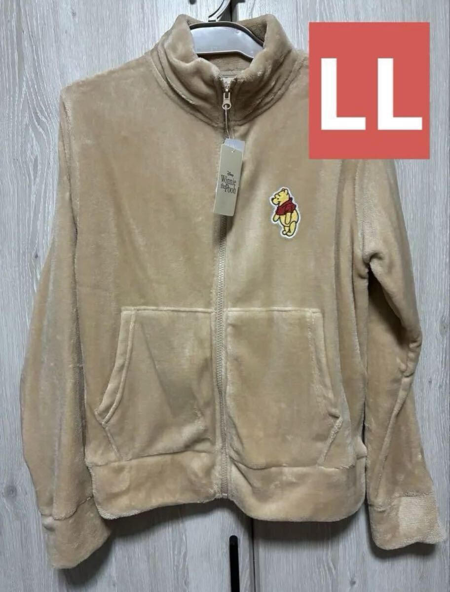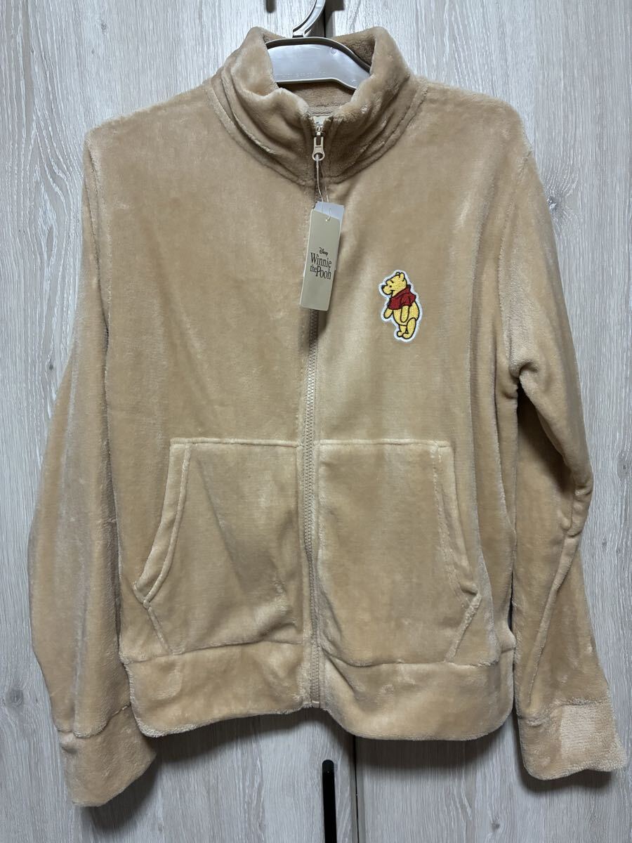 ディズニー プーさん刺繍が施された、柔らかいベージュのフリースジャケット。