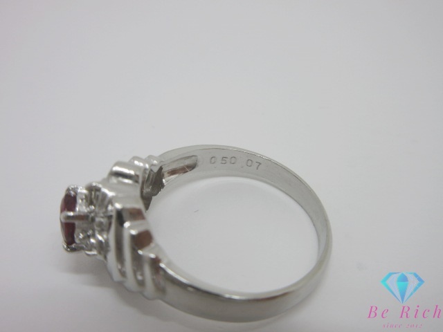 | 重量 | 総重量:約4.95g 【使用石】(カラット数/刻印) ルビー:0.50ct / 050 ダイヤモンド:0.07ct / .07 | ||||