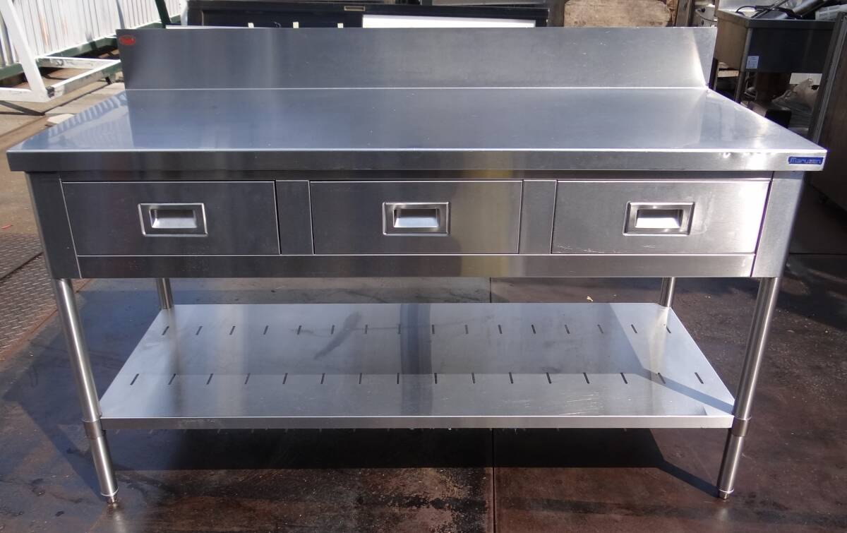 マルゼン 業務用 厨房機器 ステンレス テーブル 作業 台 引き出し 下棚付き 1500×600×840(ガード150) 中古 生駒市 引き取り 中古 | |