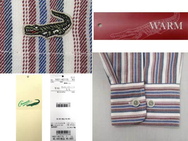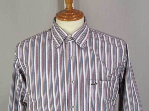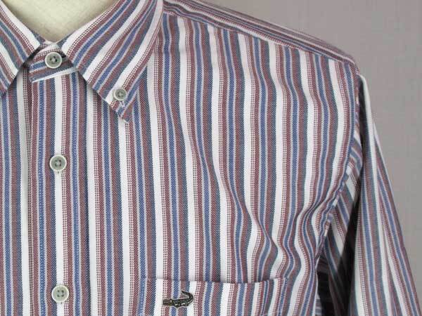 クロコダイルのワニマーク付シャツです。 【ポリエステル素材/保温性に優れた生地を使用】 ポリエステル・ツイル生地を使用しています。 ハリ・コシのある生地です。 【デザイン・ディティール/トレードマークのワニが決めて】 衿形はボタンダウン仕様。 左胸ポケットにワンポイントでトレードマークのワニを施しています。 白ベースにワイン、ブルー等のストライプ柄です。 【スタイル・シルエット・フィット感】 サイズ/シルエットはベーシックスタイル。 大きすぎない・細すぎないジャストフィット シルエットです。 バック・サイドダーツ仕様。 カンボジア。 |