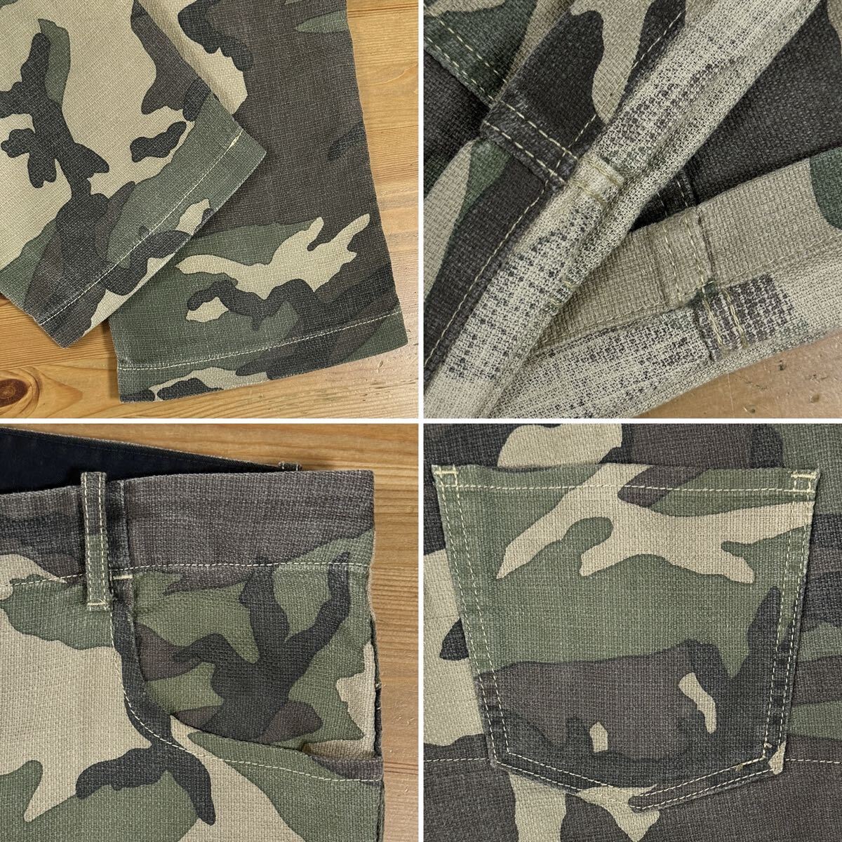 ☆オールコットン素材のタフな生地。全体に迷彩柄を落とし込んだミリタリーテイストの一本。更に膝部分には別布を配したダブルニー仕様の本格的なディテールが魅力のボトムスです。