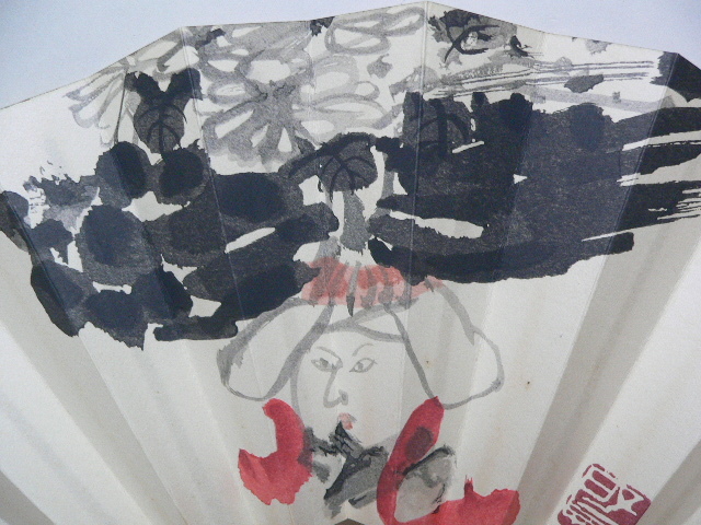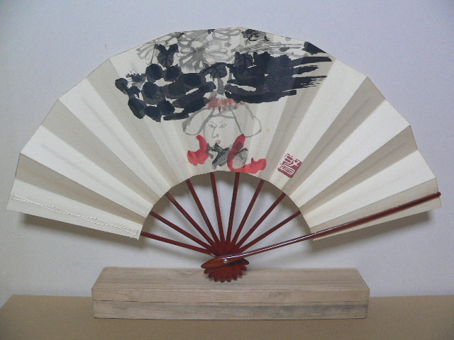 「白川女」扇 木版画 桐箱付き 伊谷賢蔵 模写